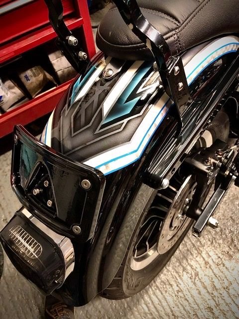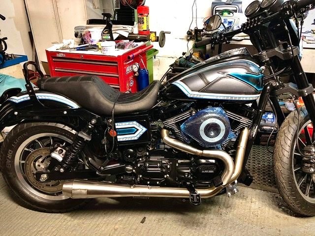 2004 Dyna Glide Sport now it’s S&S T124 Dyna, 640 cams, big bear chopper exhaust and mounts, gigastatt gigacycle inverted front end, TC bros risers and bars, ton of powder coat, chain drive and Airbrushes paint plus silver leaf - waiting on front fender and battery cover will be repainted but for now off to the dyno for engine break in and full set up