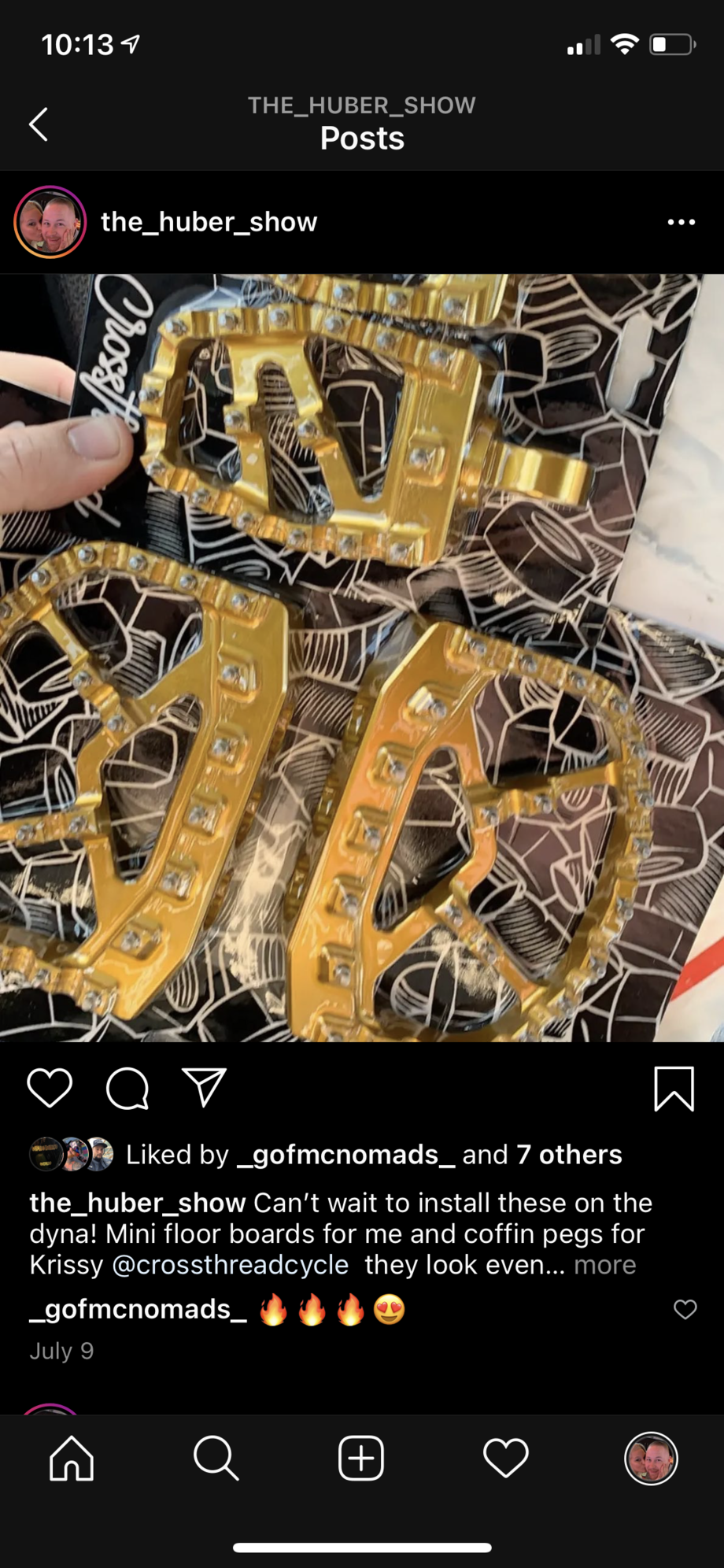 I've got a pair of the Large Mini Floorboards from HD. They look sweet. But I've come to the realization that the forwards themselves are the problem, not the pegs or floorboards. I think the only REAL solution would be full size floorboards on forwards. Other than that, my feet just keep getting slowly pulled off the controls due to my legs acting like a "windsail." I've decided to switch to further-forward mid controls and see how I do with those.