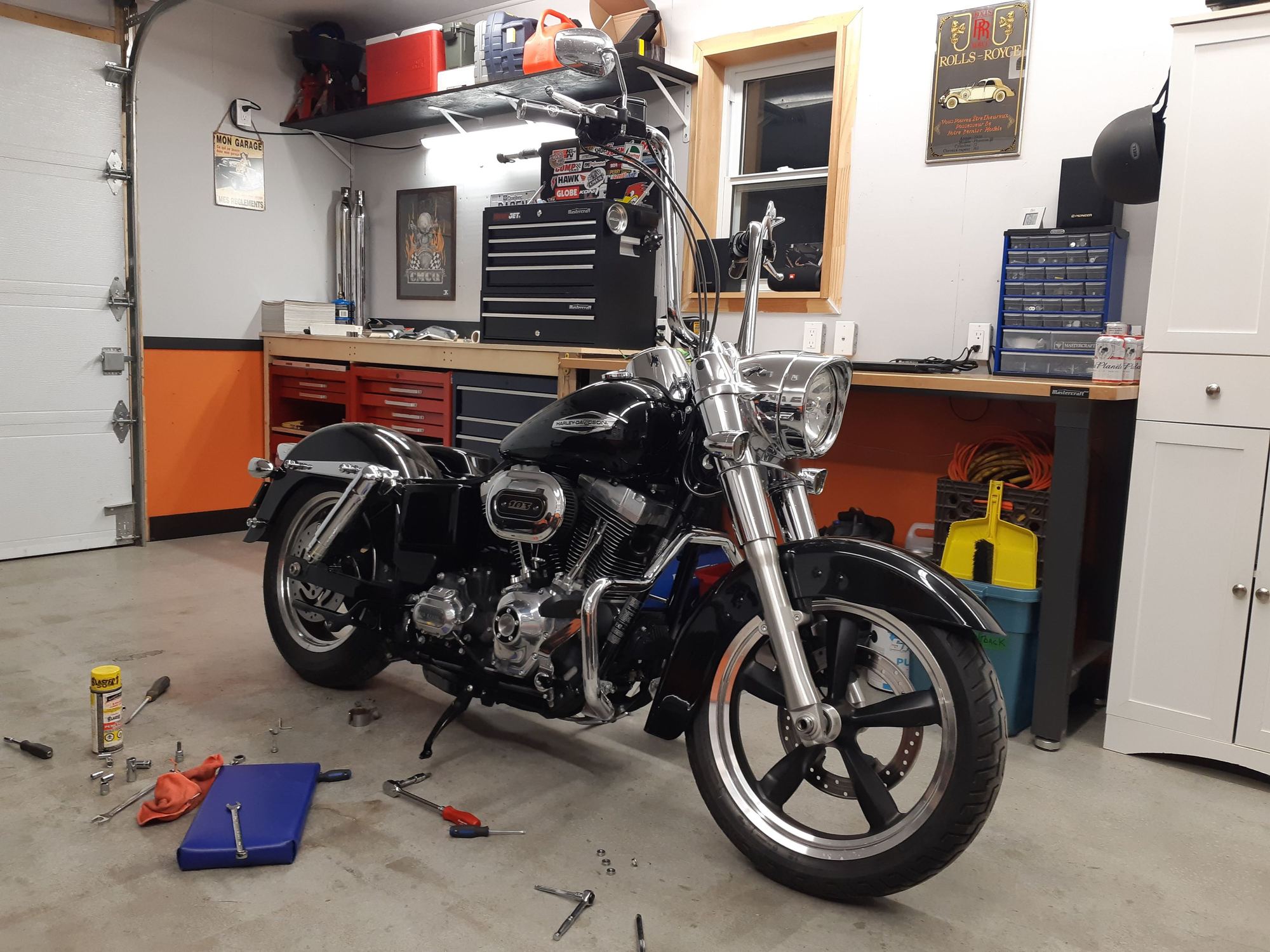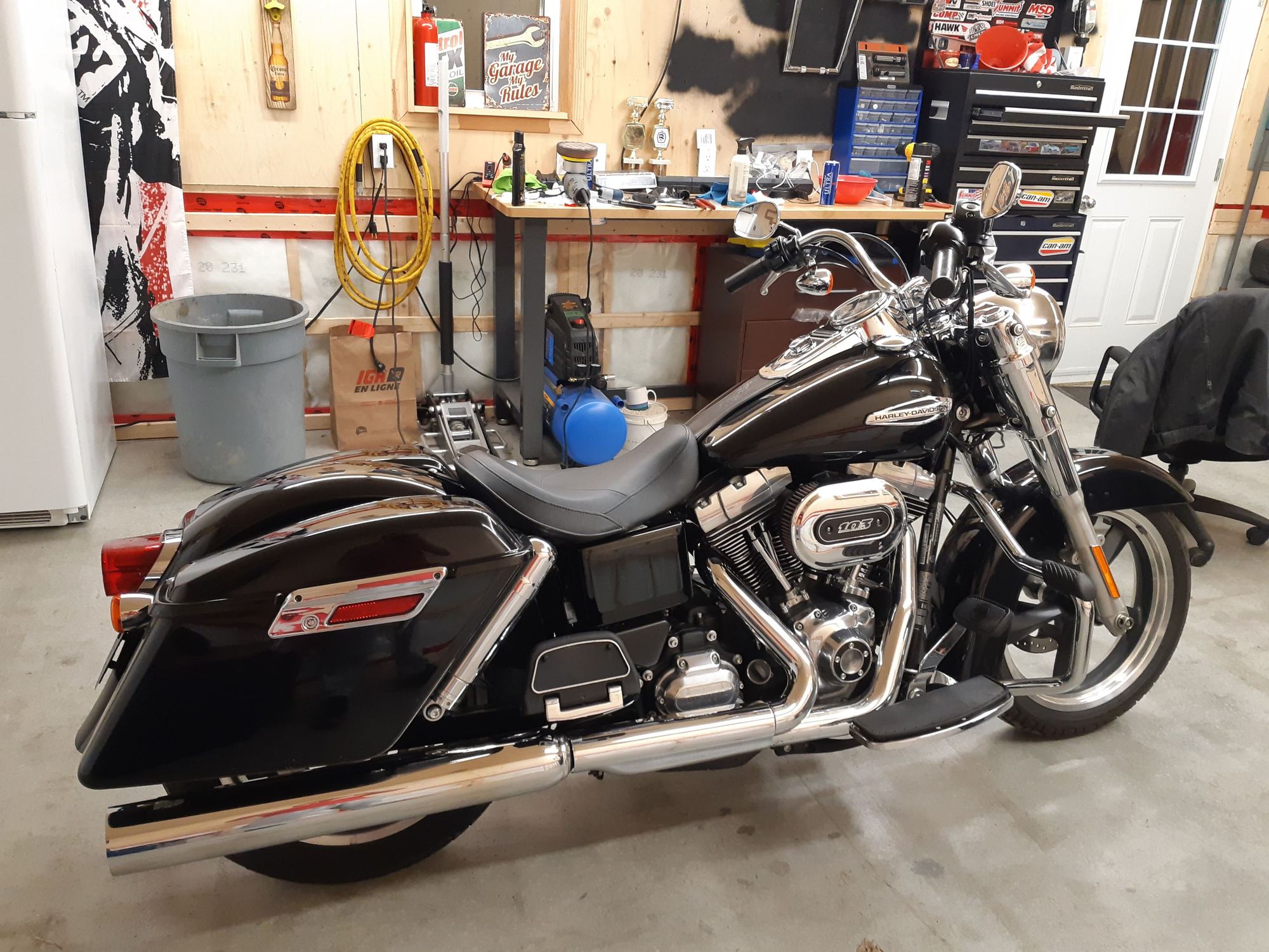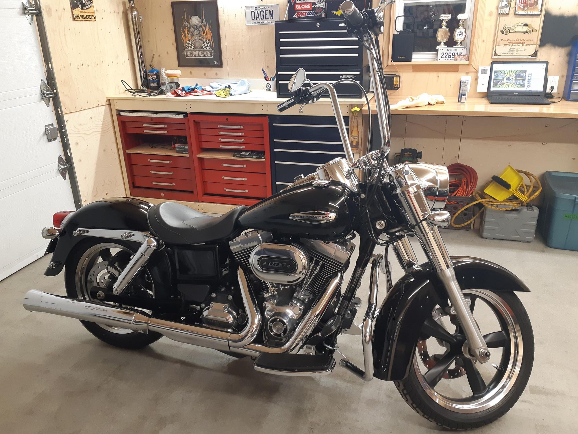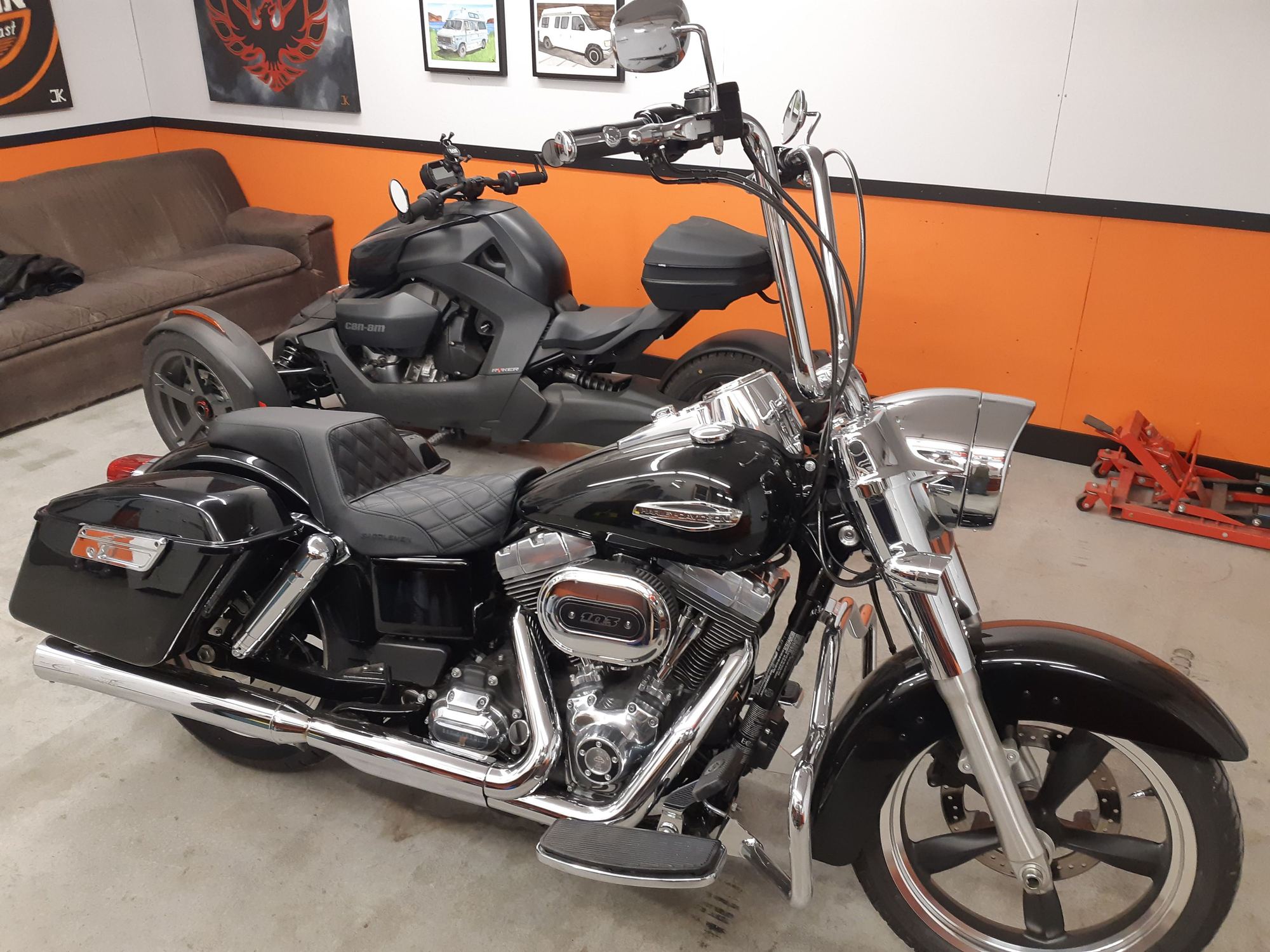 It's a 2016 Harley-Davidson Dyna FLD Switchback with the HO103 engine. I got her with 36 000 miles on it! The bike came totally STOCK!. The day I took delivery of the bike, I took off the windshield and the sissy bar. Don't ask me how is it with a Windshield, I never tried my bike with!