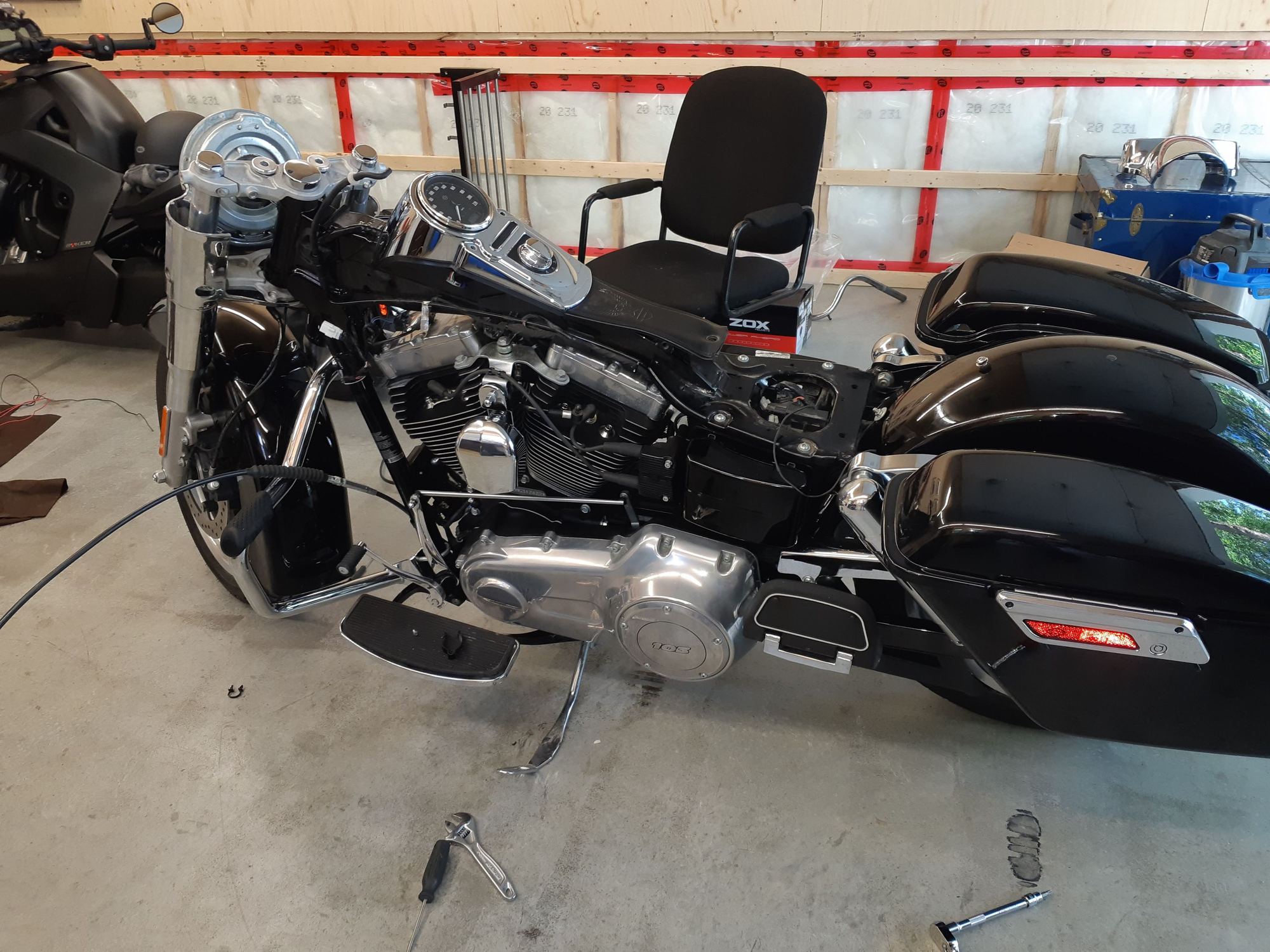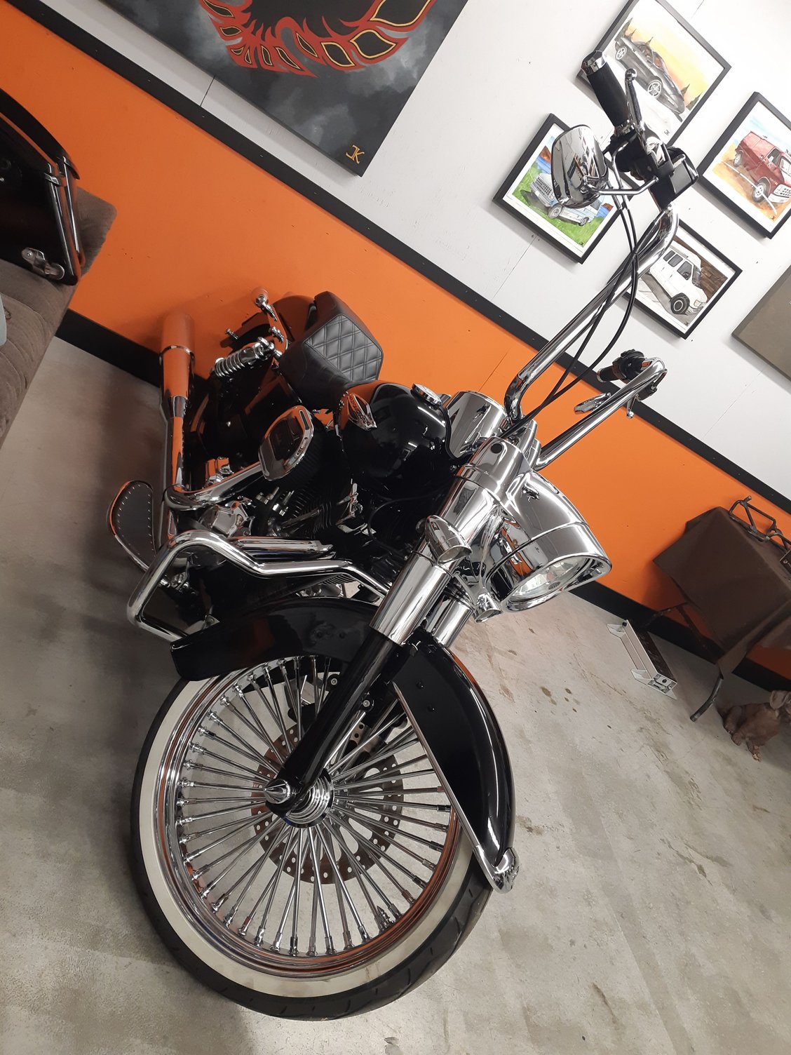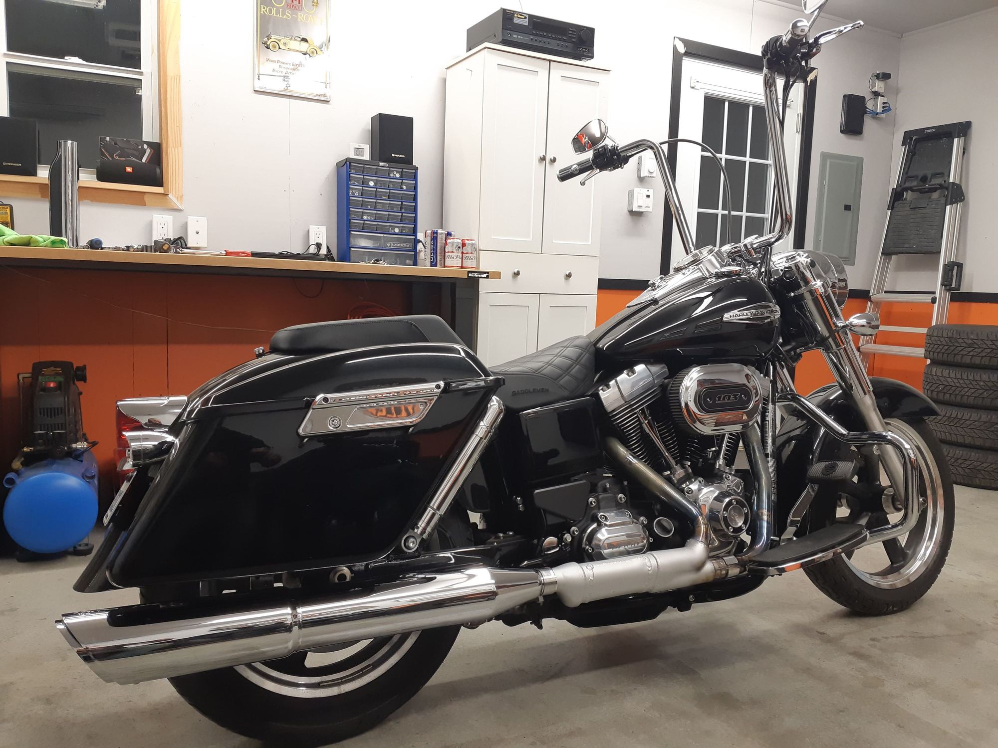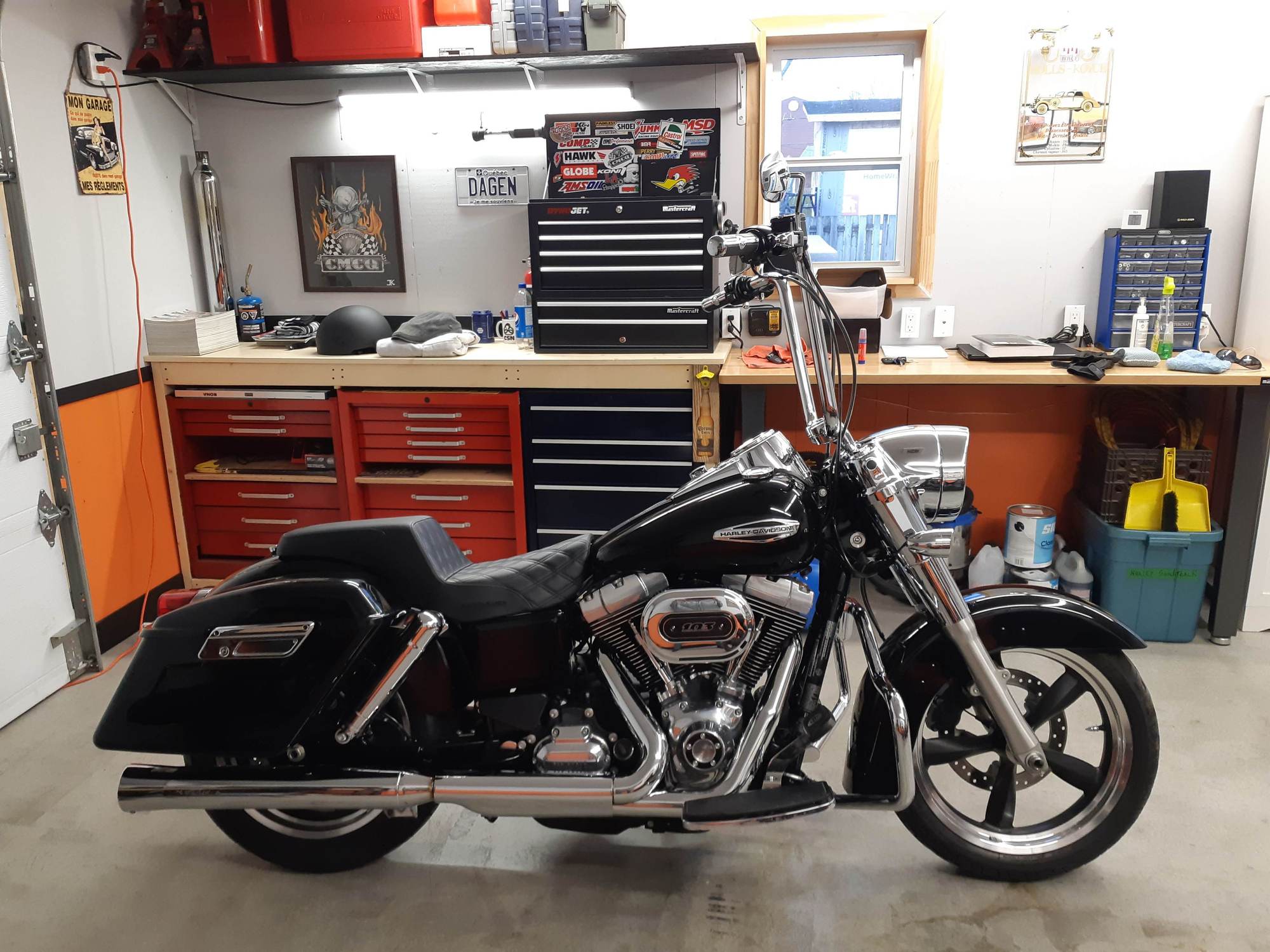 It's a 2016 Harley-Davidson Dyna FLD Switchback with the HO103 engine. I got her with 36 000 miles on it! The bike came totally STOCK!. The day I took delivery of the bike, I took off the windshield and the sissy bar. Don't ask me how is it with a Windshield, I never tried my bike with!