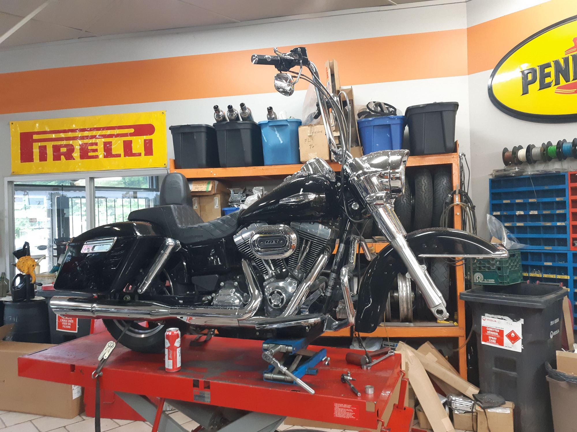 I took several pictures of the bike and I found out it need to be lowered at the front also! Time to get the Progressive Drop-In kit!.... I drop it 2"