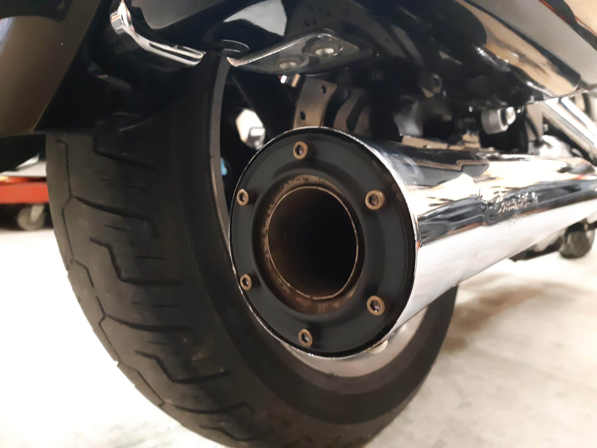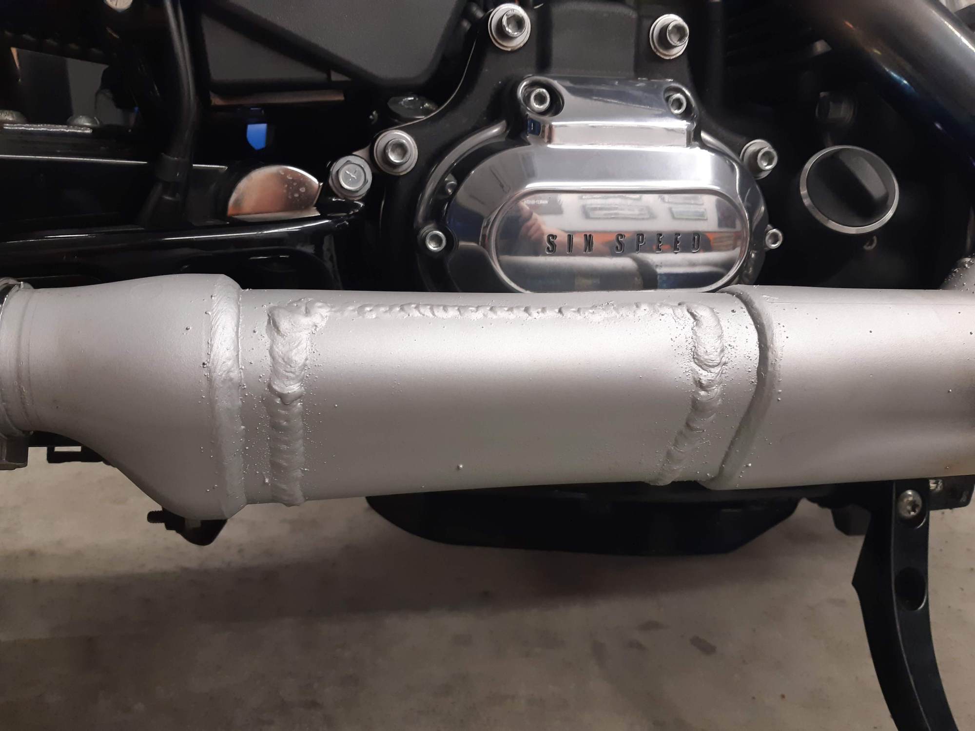 I drove 3 weeks with the Screamin' Eagle and I hate it... I always been a fan of Vance & Hines so here the TwinSlash Slip-On. I decide also the decat the converter, I bring the header at work, cut the hole remove the stuff and weld back the door and put 3 coat of high temp paint to prevent rust.