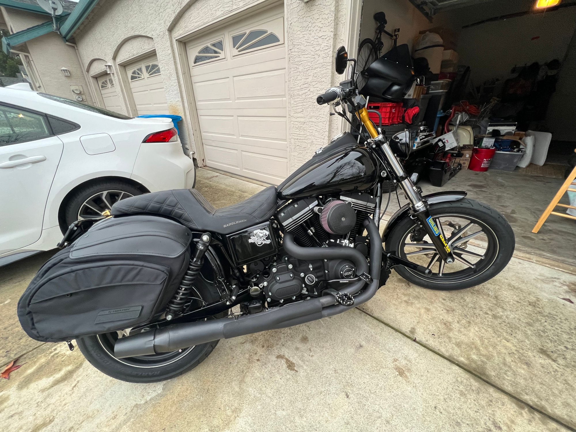 So I'm curious to see what kind of upgrades people have done with their bikes, and hopefully figure out some other stuff that I would want to do to mine. I have a 2013 FXDBP and I've done a handful of things to it already. 13.5 Fox in the rear, heavy duty progressive front springs, fork brace, put the OEM rear fender back on and wired up the lights for that since someone had installed a switchback rear end and I wasn't feeling it, I also installed Galfer rotors, 7in hardcase risers w/4in ODI handlebar, seat, thunderheader and high flow air cleaner ( should I keep the thunderheader installed or go with something different? From a performance perspective? )and thats about it. I work at a harley dealership and was told when they test rode the bike after changing the rear tire that it may have cams installed but I honestly have no idea. It is setup like most generic dyna bro dyna's. I'm more interested in what everyone recommends or has for handling and performance upgrades though? I want to keep the bike reliable since it is a daily rider and I have to work around California's BS carb laws somewhat, but definitely want a little more power and a little better handling. Any recommendations? Thanks!