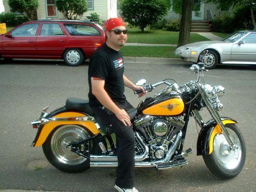 Back in '01 my first brand new Harley was a FLSTF in two-tone Vivid Black and Chrome Yellow. I loved the color of that bike, and it was rare where I live in the Minneapolis area. I believe it was available on the Fat Boy, Wide Glide and Sportster models only.