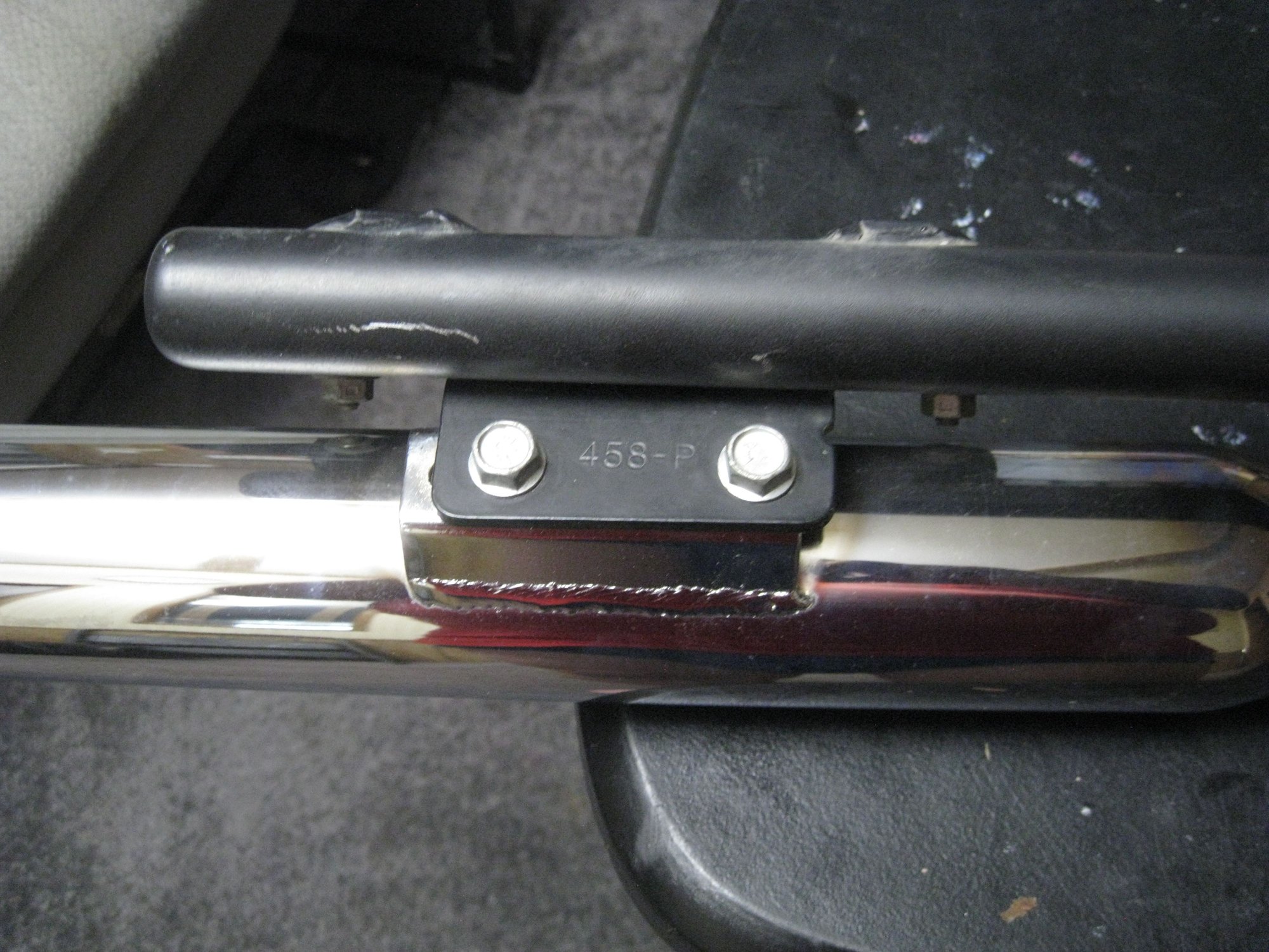 I searched 458-P exhaust bracket and came up with the link below. The bracket in the picture looks like what you have best I can tell. Says it fits 07-13 Softail with Vance amd Hines exhaust. So it may be a generic bracket, or that one was modified for the Python exhaust.