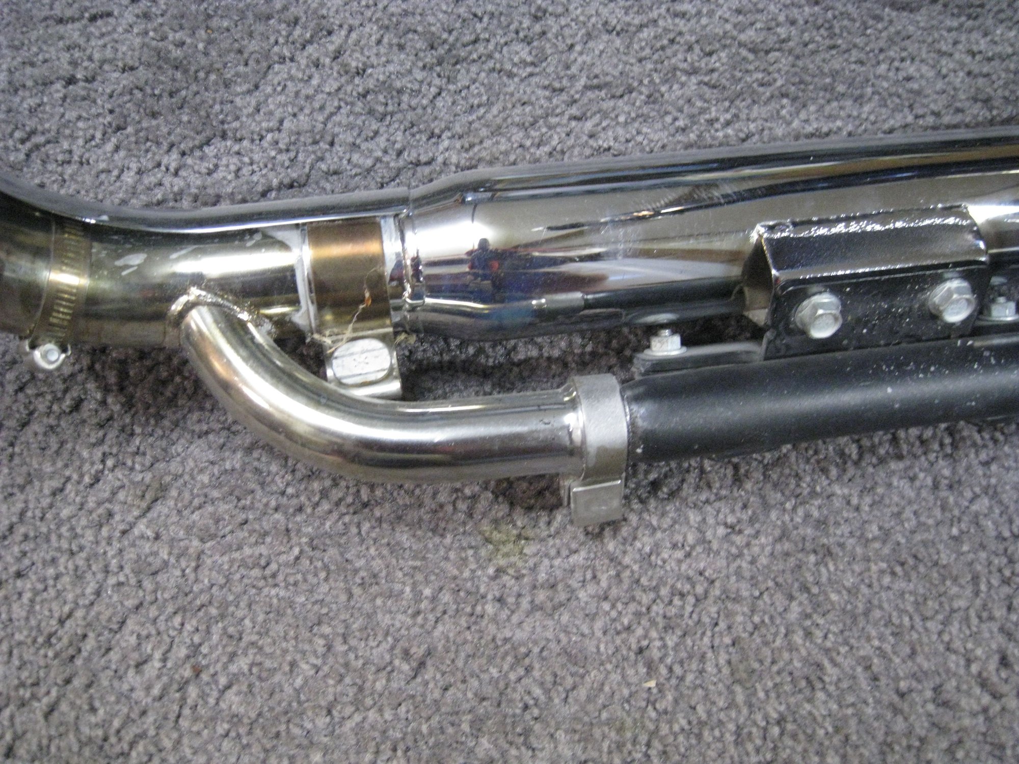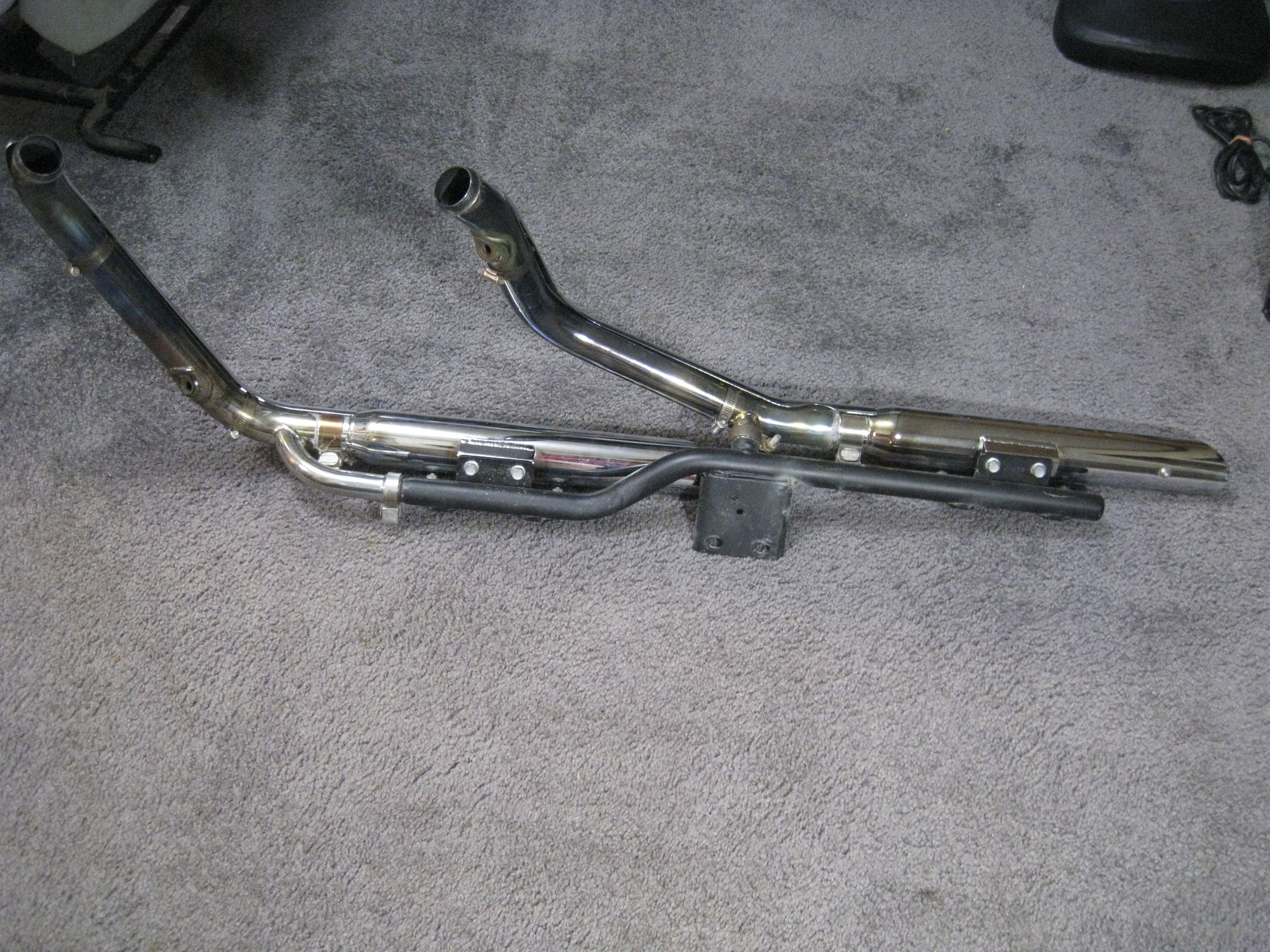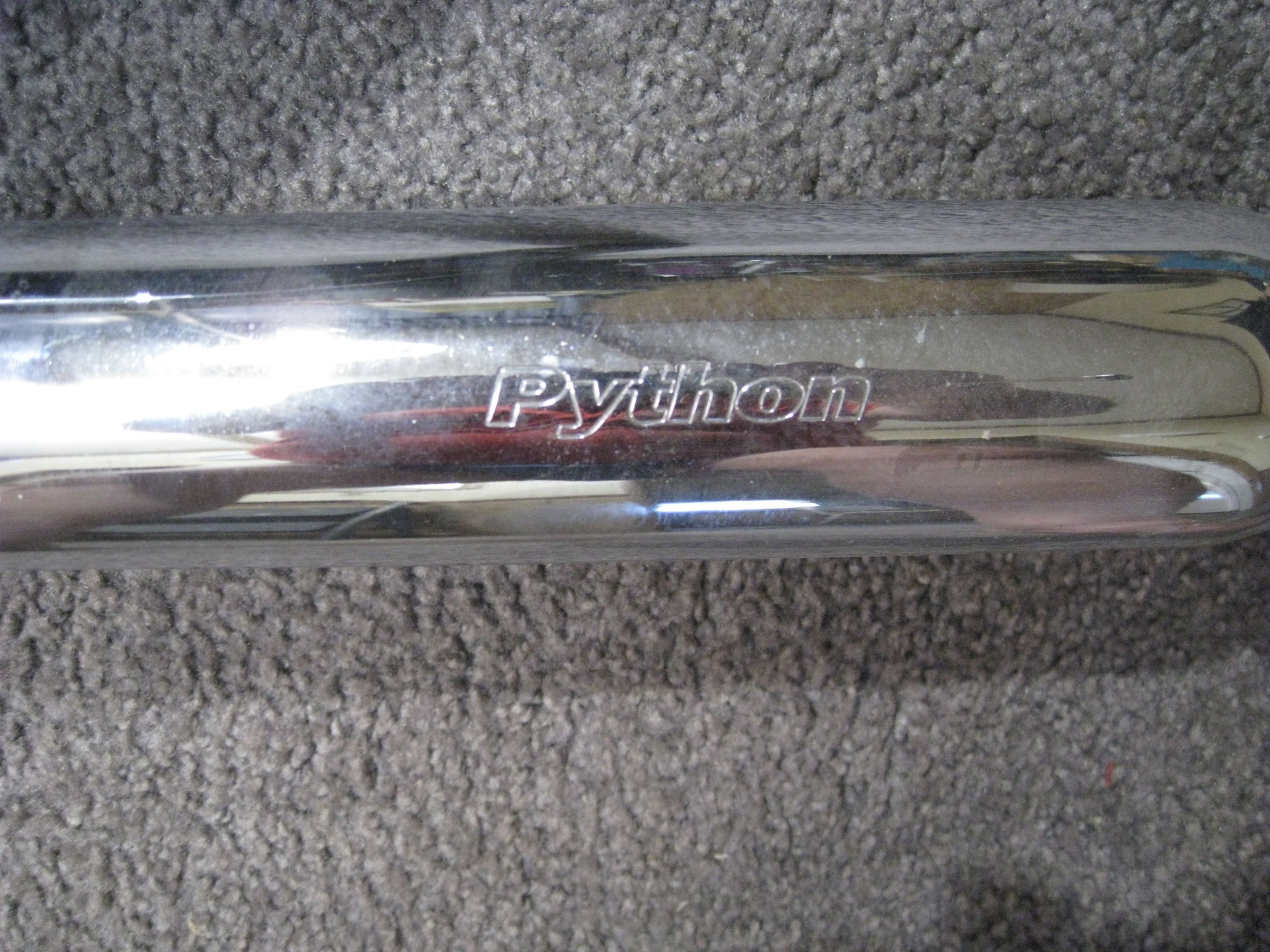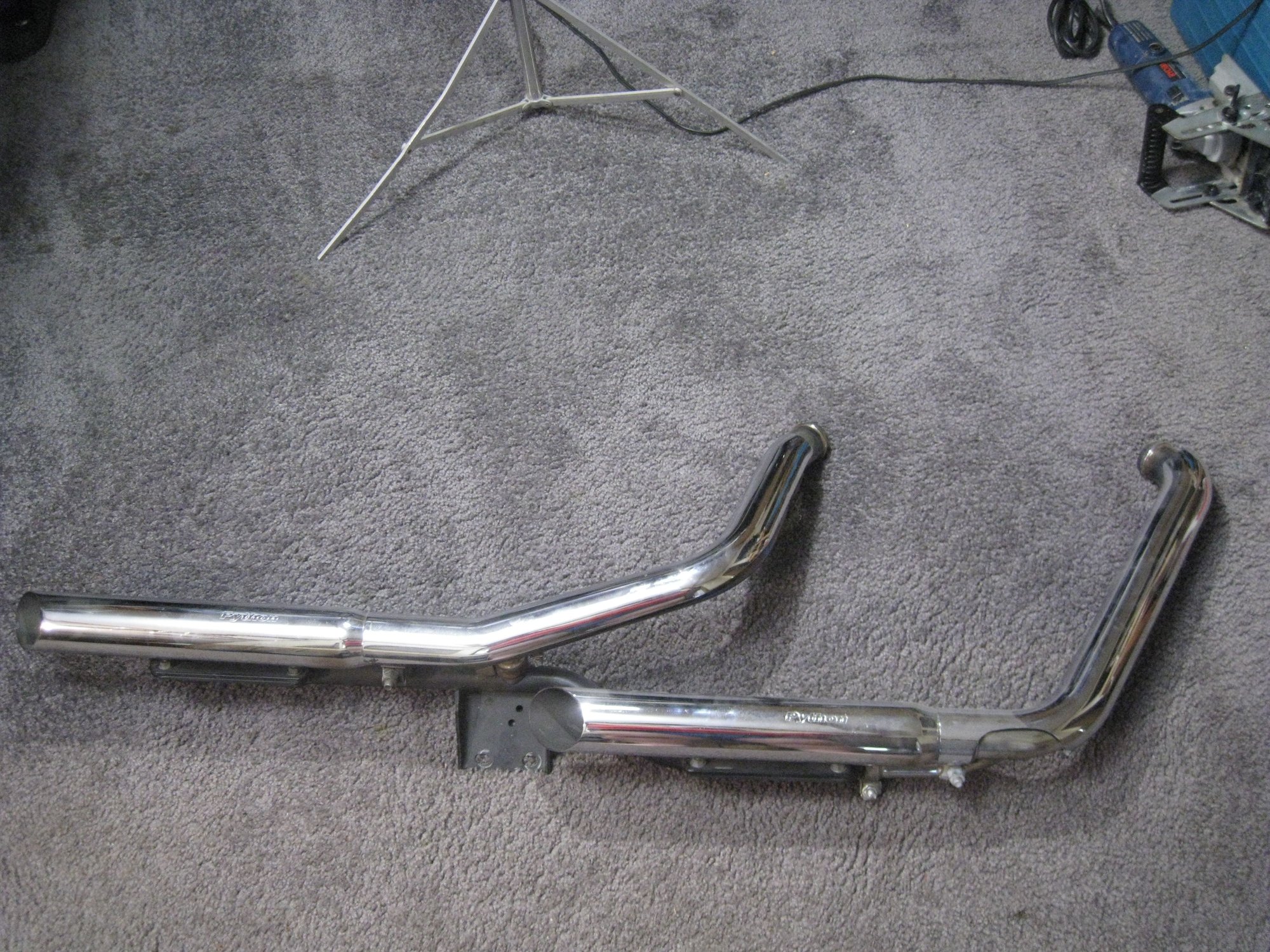 I got my first Harley (first ever motorcycle) in 1976. I had Sporsters for a few years and then went to Dressers. I never owned a Lowrider or Dyna. While driving through town I saw a bunch of stuff set out on the curb in front of a house where they were moving out. I saw this "LIKE NEW" Python Exhaust sitting there, so I grabbed it. I believe these cost $500. or more and I saw it has O2 sensor bungs, so it must be for kind of newer bikes. I want to sell it to someone (I'll give them a hell of a deal) but first I need to know what it is. All I know now is its by Python, it's like new, and I'm guessing it's for a Dyna of some sort. There is only one mark which is on the bracket 458-P. I couldn't find out what it means. I know nothing about Dyna's. It would be great if somebody here recognized it and could tell me it is Python model X, and it fits Harley model X from 20XX to 20XX. Also, I actually only want to get accurate replies. I can sit around and make as many guesses about what it fits as anybody, but since I'm going to ask money for it I can only use correct info. No guesses. Well thanks for helping.