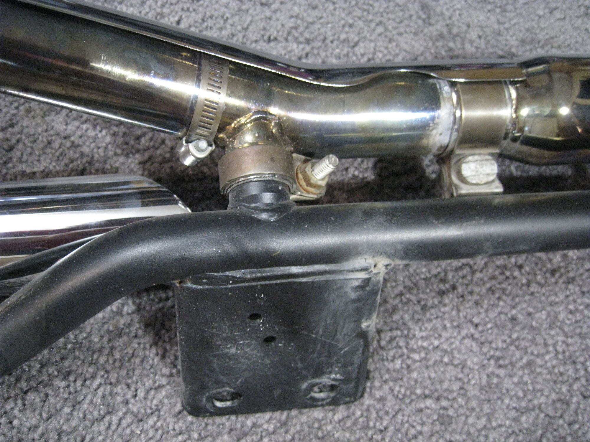 The crossover between the header pipes you have, that uses the mounting bracket to pass gases between the headers on dual exhaust set-ups, is a standard design of the HD OEM crossovers for many years... I think I first saw it on my '89 Heritage, then my '03 Heritage.