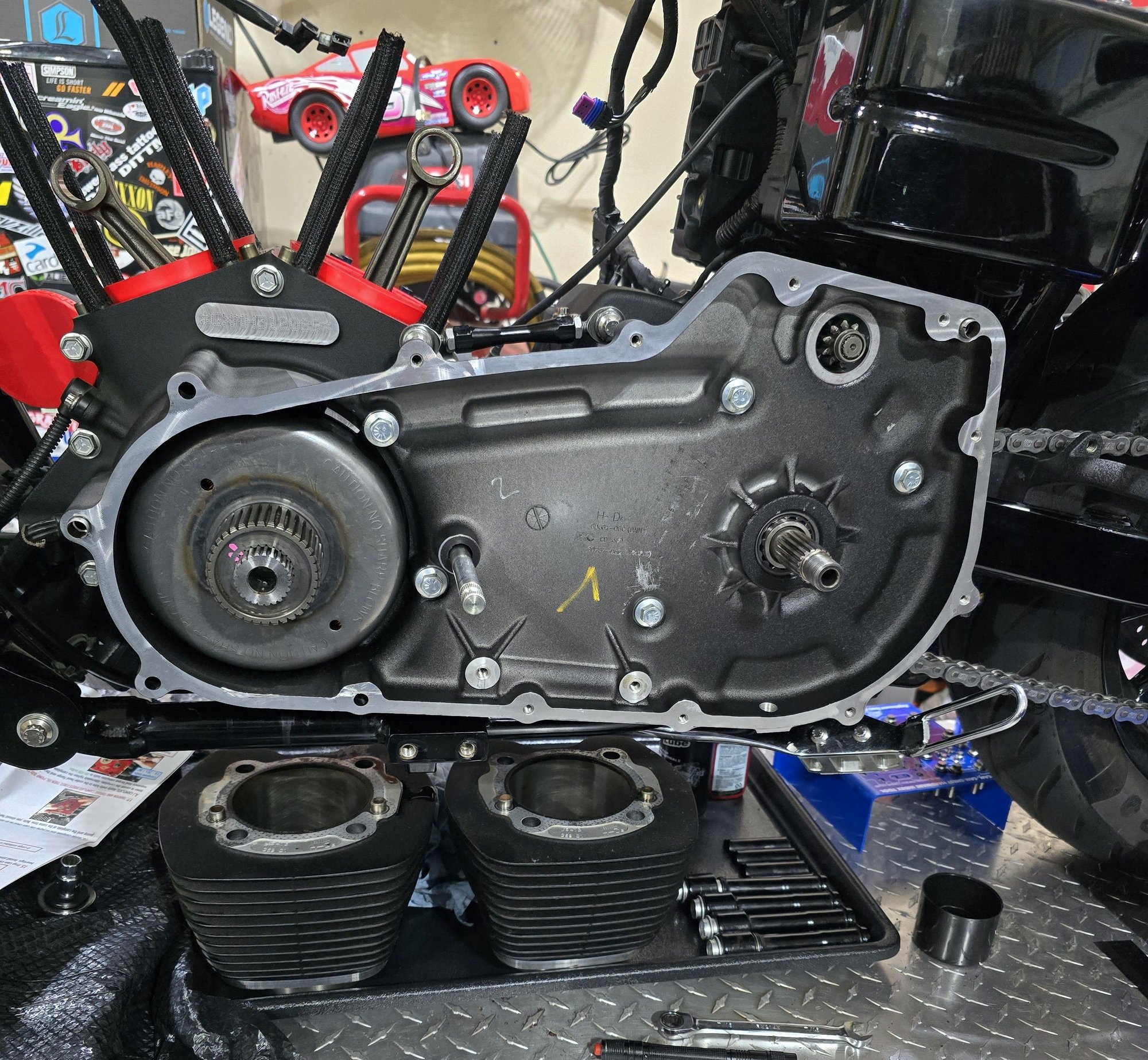 Also got some fresh new bolts for the inner primary, nothing more comforting than a one click 28lb install! While swapping the starter bolts for ARP's I found another stock bolt hiding behind the battery so that was an unexpected plus.
