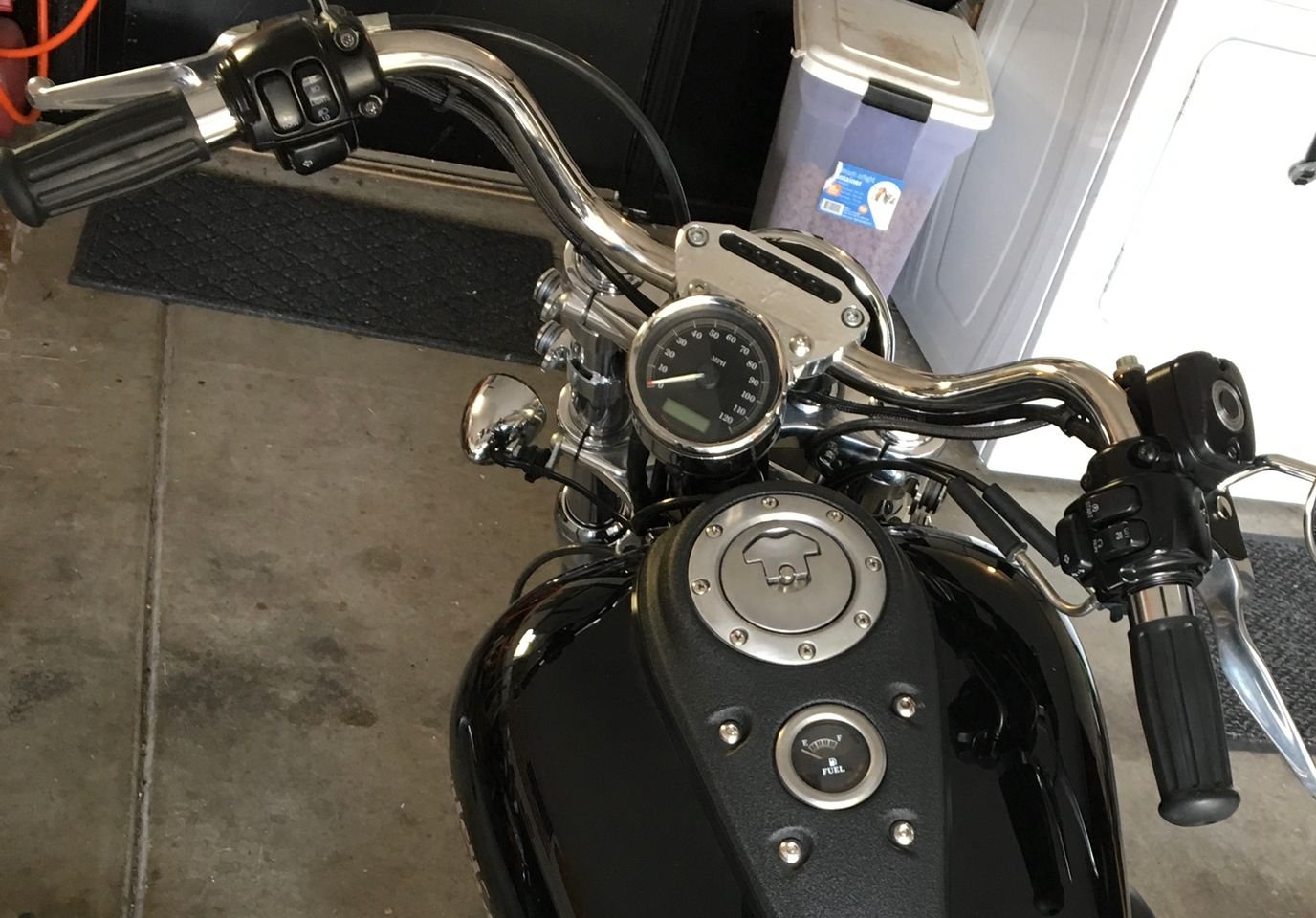 I didnt like my speedo sticking up in no mans land either. I got a bracket from an 08 XLC and put it on my 07 fxd. Still bar mounted but brings it down nice and tight.