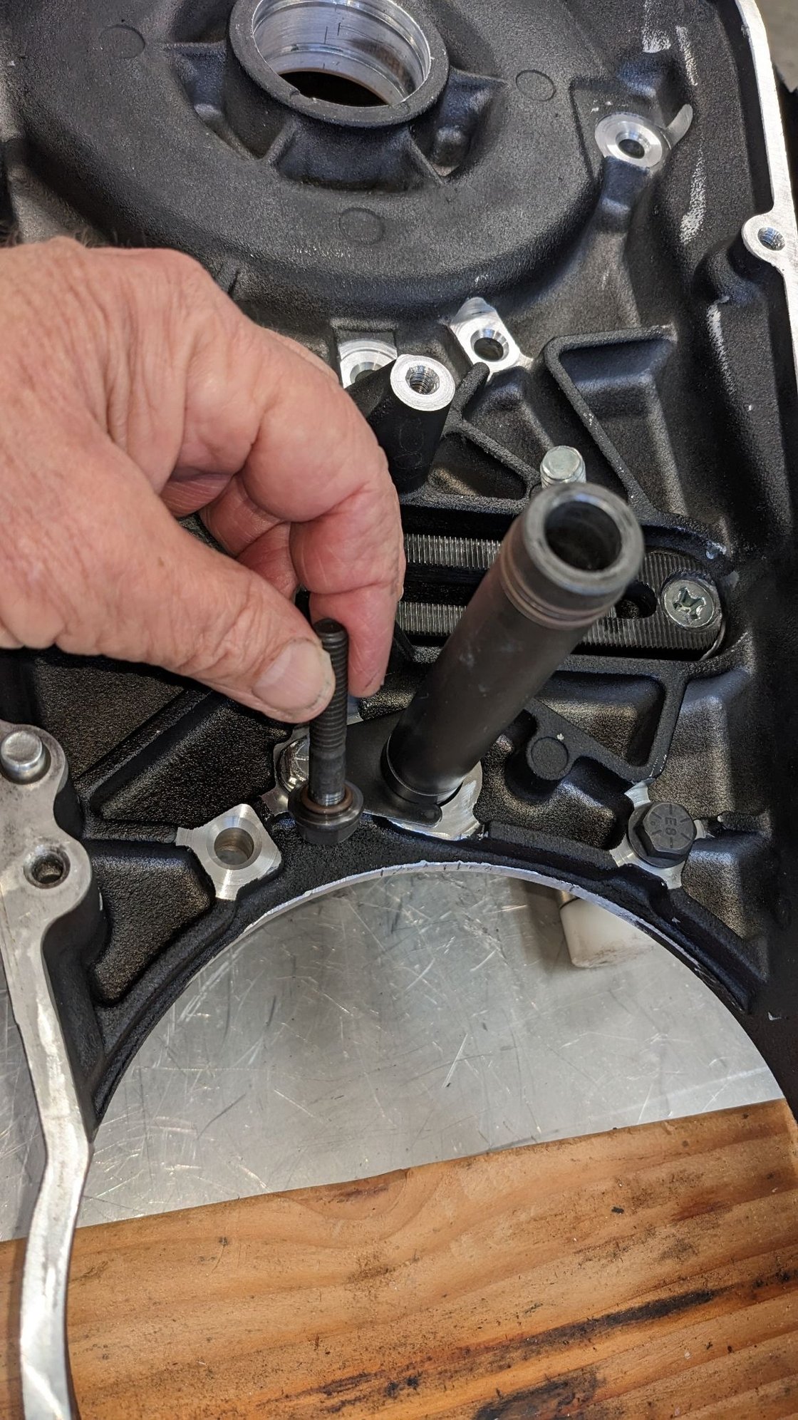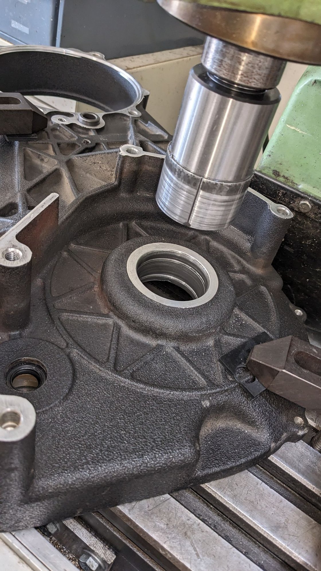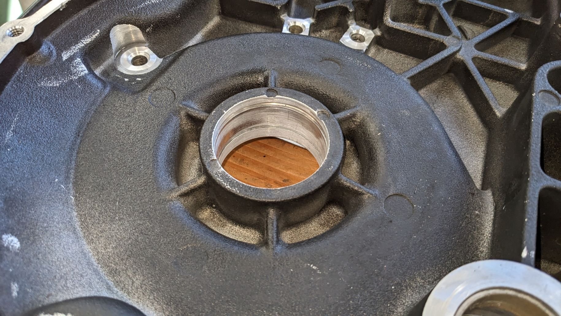 Some time ago I replaced the inner primary bearing and got it cocked. It misshaped the case. I figured to clean it up and make sure it was straight.. I made an RnR tool to ensure that the bearing was straight.