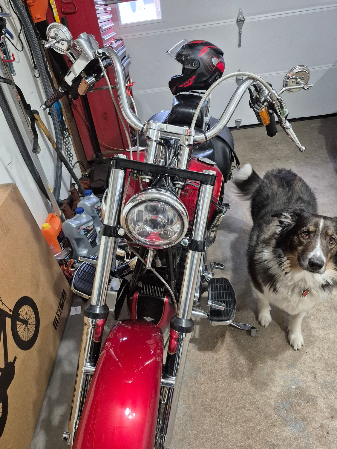 I've always liked the conversion to the 7" headlight on a Fatbob, I think it looks good. OTOH the 5 3/4" looks good on the wide fork also. Decisions, decisions. Either way will look good.