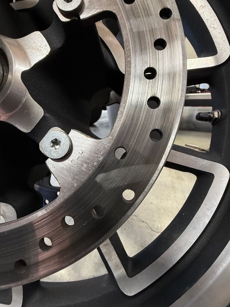 That’s just normal brake pad residue. The dark lines are pad material transfer. The gray smudge is fine dust from normal wear. Nothing to worry about unless you feel pulsing or grooves.