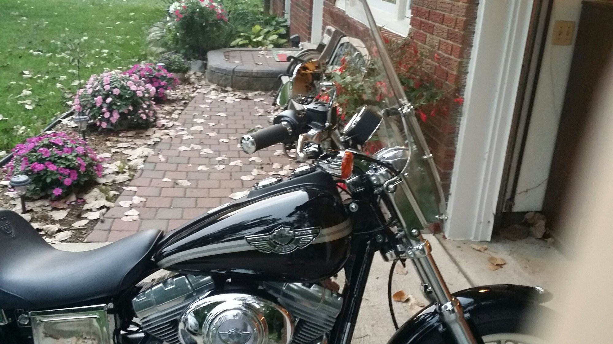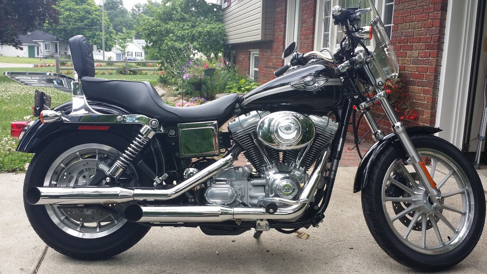 Btw, thanks everyone for all the comments on her. I came from a 1200 roadster that i hated parting with but it was just simply killing my back. I initially wanted an 07 or newer glide or a clean fxdx but I went out and looked at this one on craigslist on a whim and after i saw it i knew i was bringing it home. I liked the anniversary edition badging and color scheme more than i thought i would when i actually saw it in person. 2400 miles on it when i picked it up last month, it was literally a new bike.