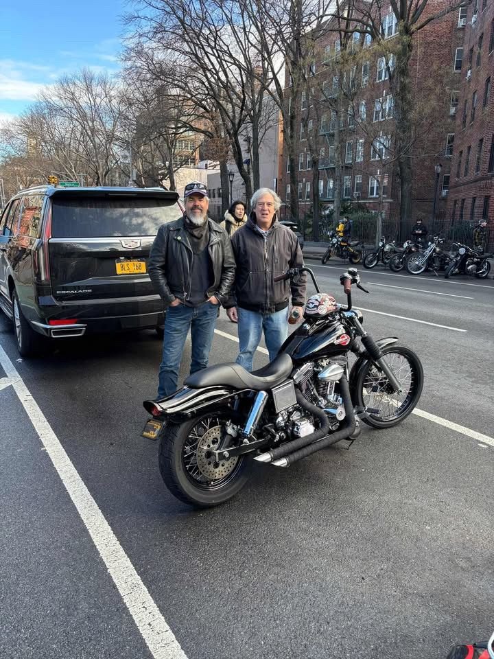 I am on the left, Cannoli Run 2026 in Greenwich Village 1/11/26. My 1997 Wide Glide that i bought new from Suffolk County HD.