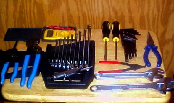 I use one of the Cruz Tools kits -- HD1, I think. After a few years, I suppose I'd be comfortable throwing out one of the plug wrenches. I've used almost everything else. I've added a set of small needle-nose pliers, a fuse-puller/tester, spare fuses and some zip ties.