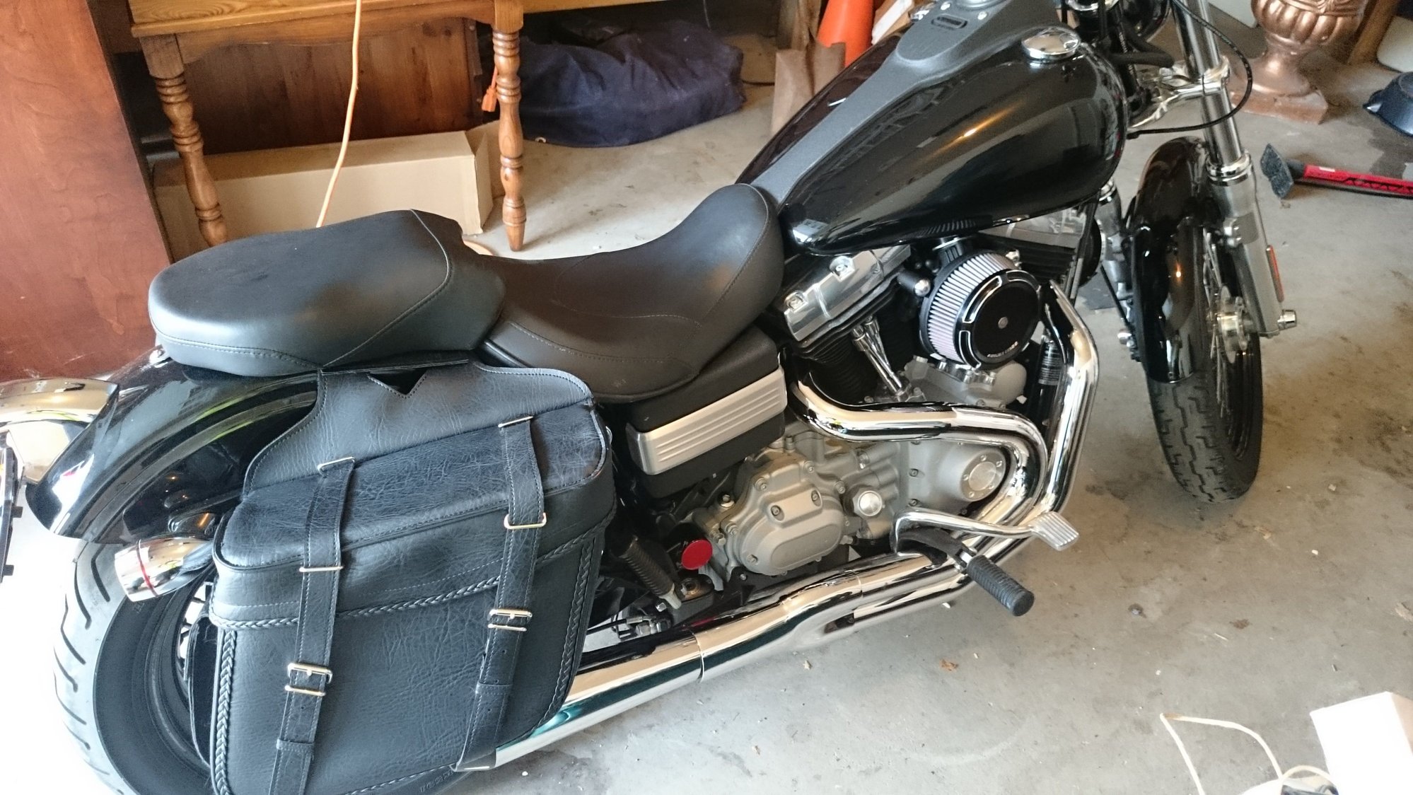 What do you think? These aren't the best way to do it, but I don't want to pay much for bags. I am using just some brackets I got off ebay for $35. I used a couple black tie downs to tie down to the brackets to prevent sliding and moving. I will put some cloth under the saddlebag yolk so it won't rub any paint.