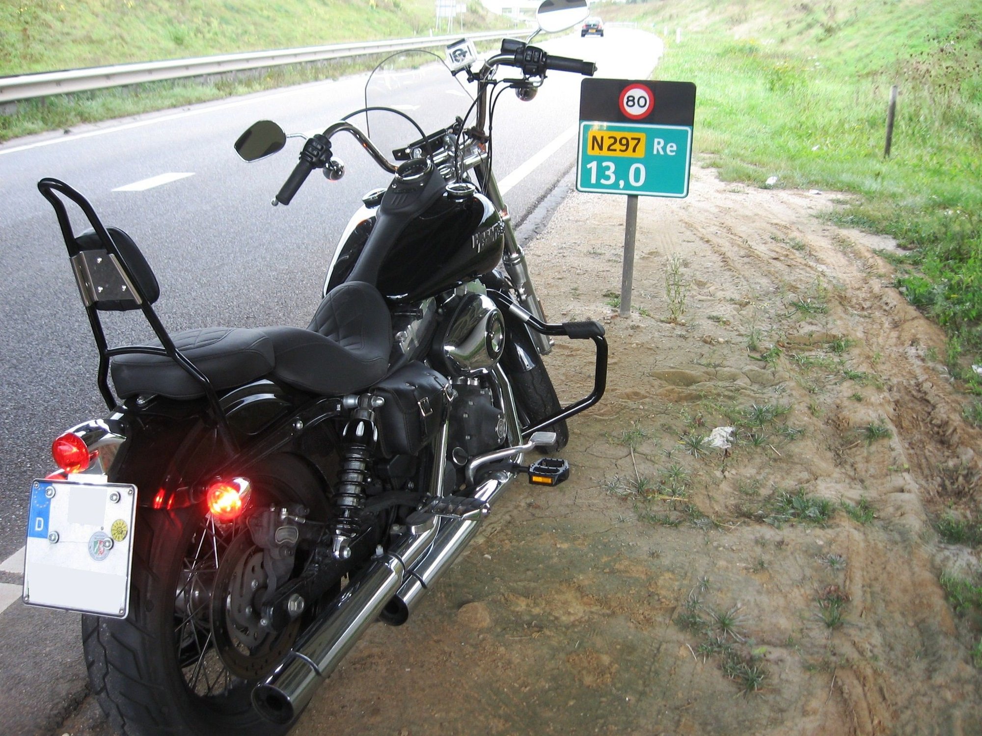 If these are cool with the current challenge OP the next challenge is your Dyna next to a lucky 13 mile or kilometer marker. Extra points for being on the wrong side of the road like this one.