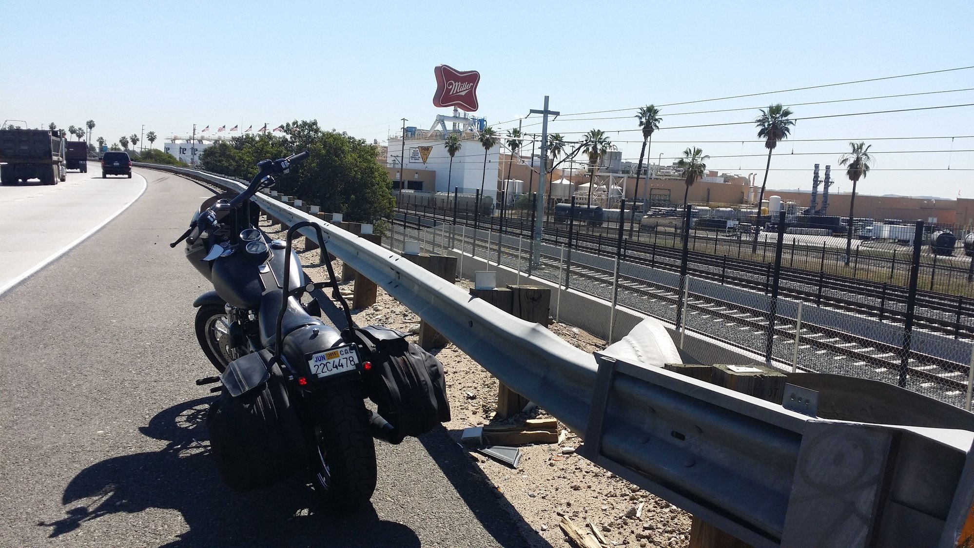 If this is acceptable the next challenge will be to honor the coming of spring and the 2015 riding season. Your Dyna in front of a park with blooming flowers.