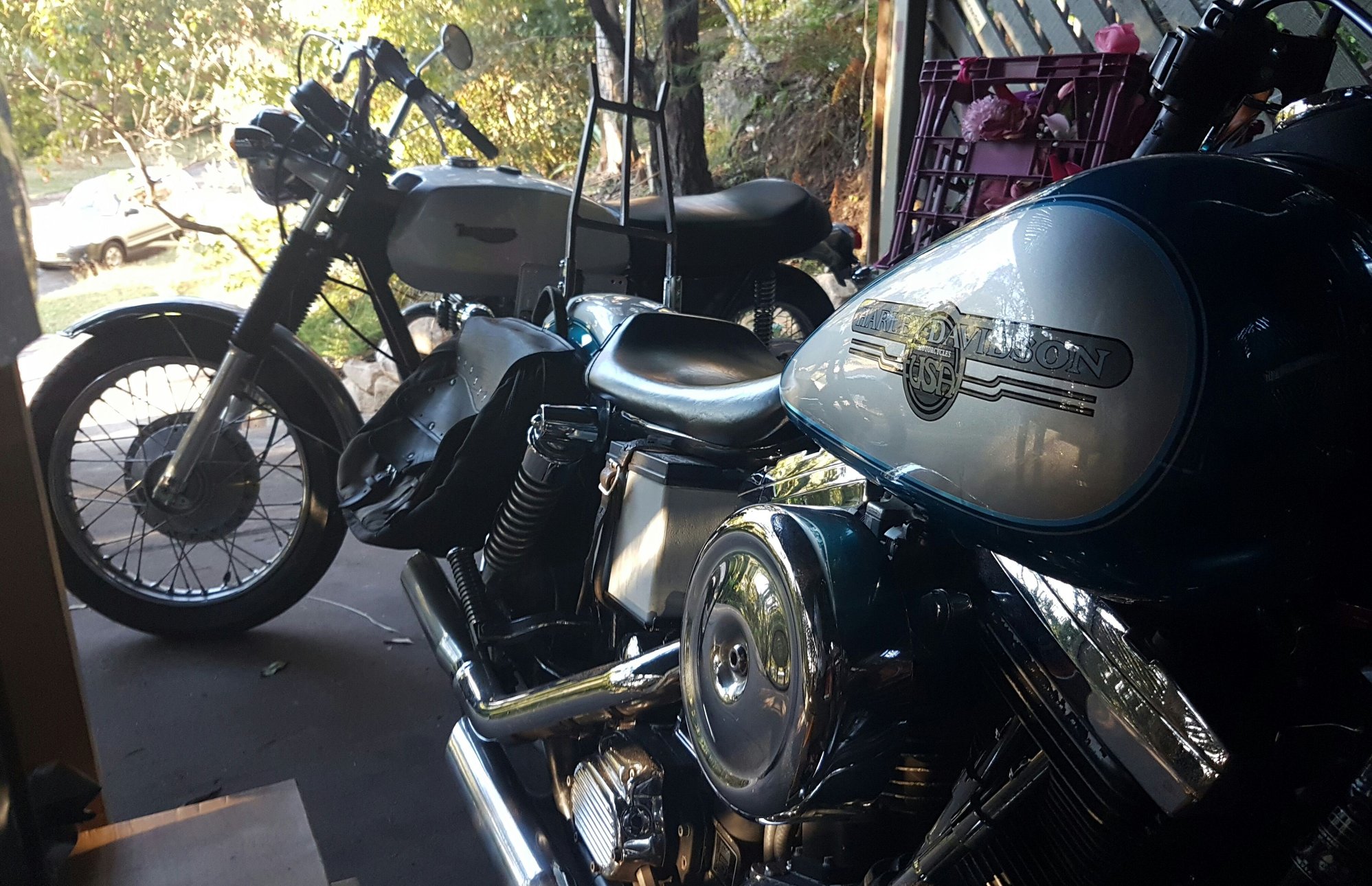 I know it's not a Dyna but it makes me happy (I'll include a Dyna in the pic though). I finally got 1 step closer to getting my 1971 Triumph Bonneville registered by getting the RTA issued frame number stamped.
