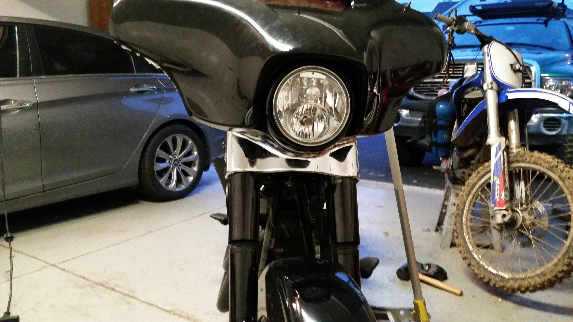 How far back does your headlight sit into the fairing? What does your mounting block look like? I just put my 7" headlight on today with the block that came with it. It looks fine on the back but it's hidden inside the fairing when I mock the fairing up