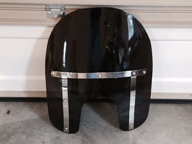 I had the shield professionally cut to 15 inches above the headlight and smoked as pics below show. Was used off and on with my Street Bob