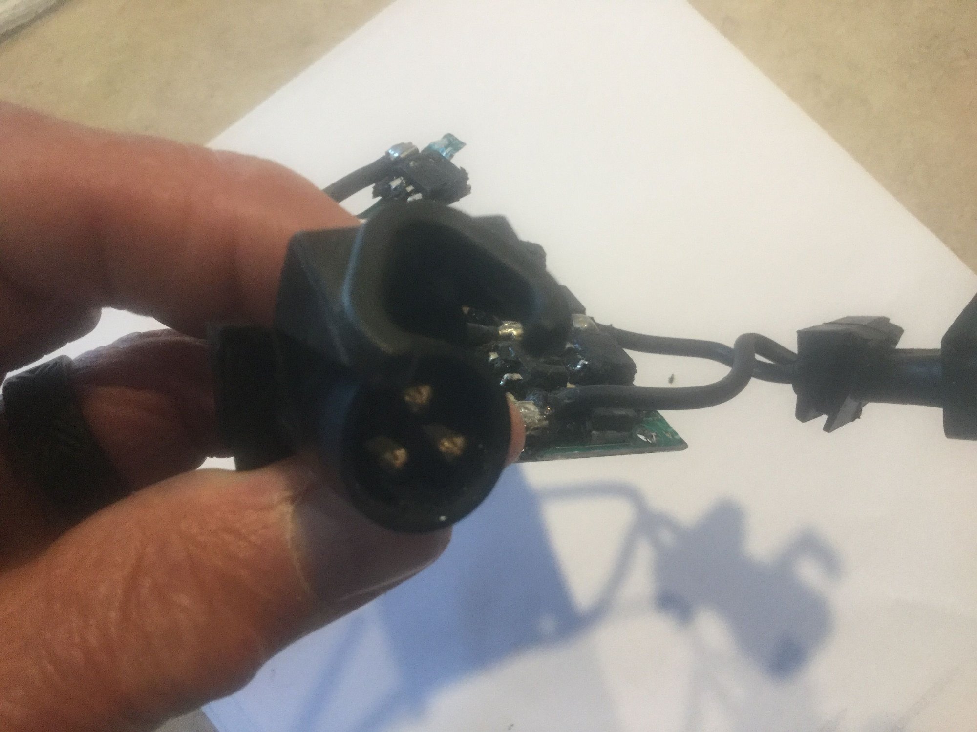 Testing a 3 phase Stator, (A single phase stator is tested in the same manner but the plug will only have 2 sockets).