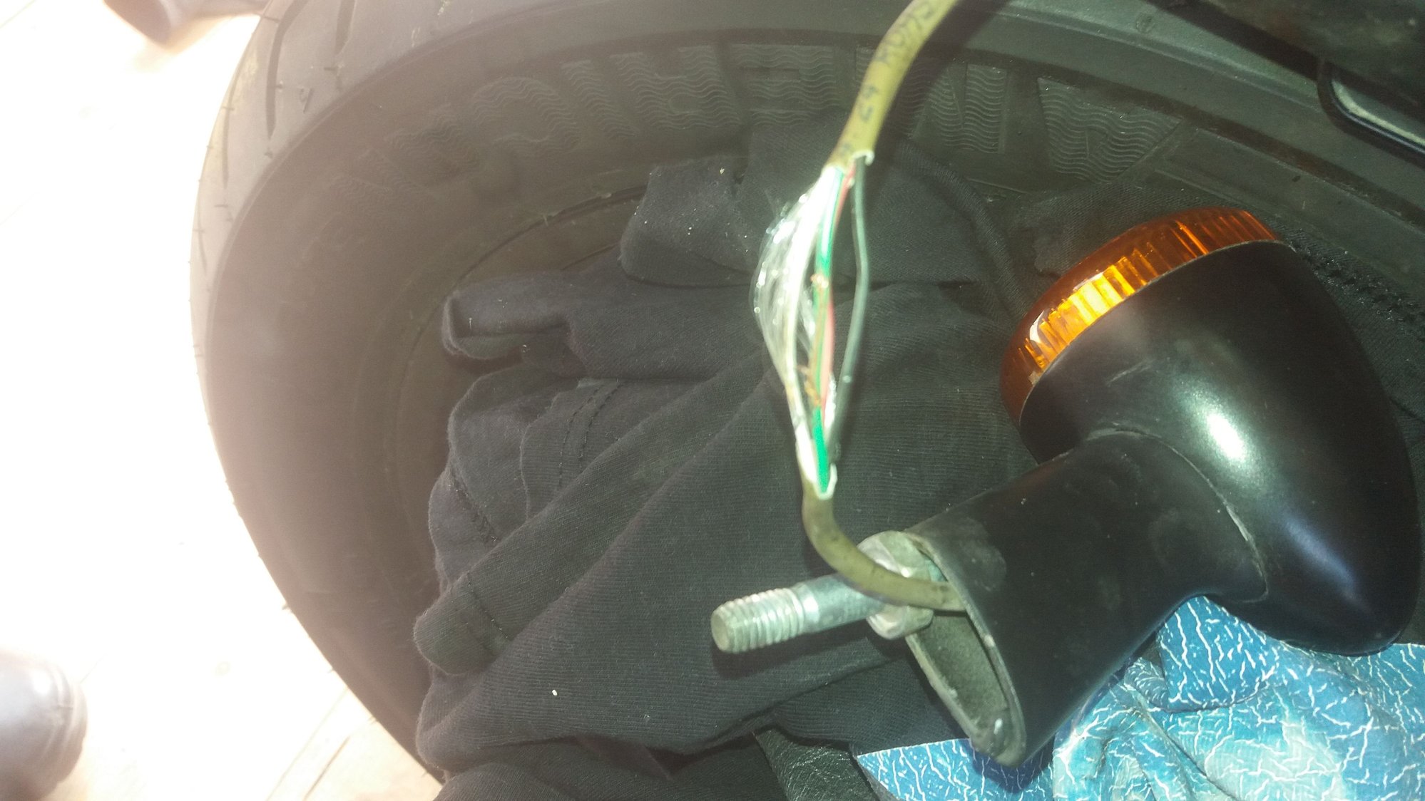 i disconnected it pulled the connection as far back as i could get it and took apart sub fram on rear right took apart indicator to get as much wire out as i could cut back the housing a bit re wrapped it taped it up and all sorted beats buying a new indicator thanks for your help lads after i cut back housing it had rubbed off wheel sexy license plate hahaha all good now and learned how to maintain the switches too