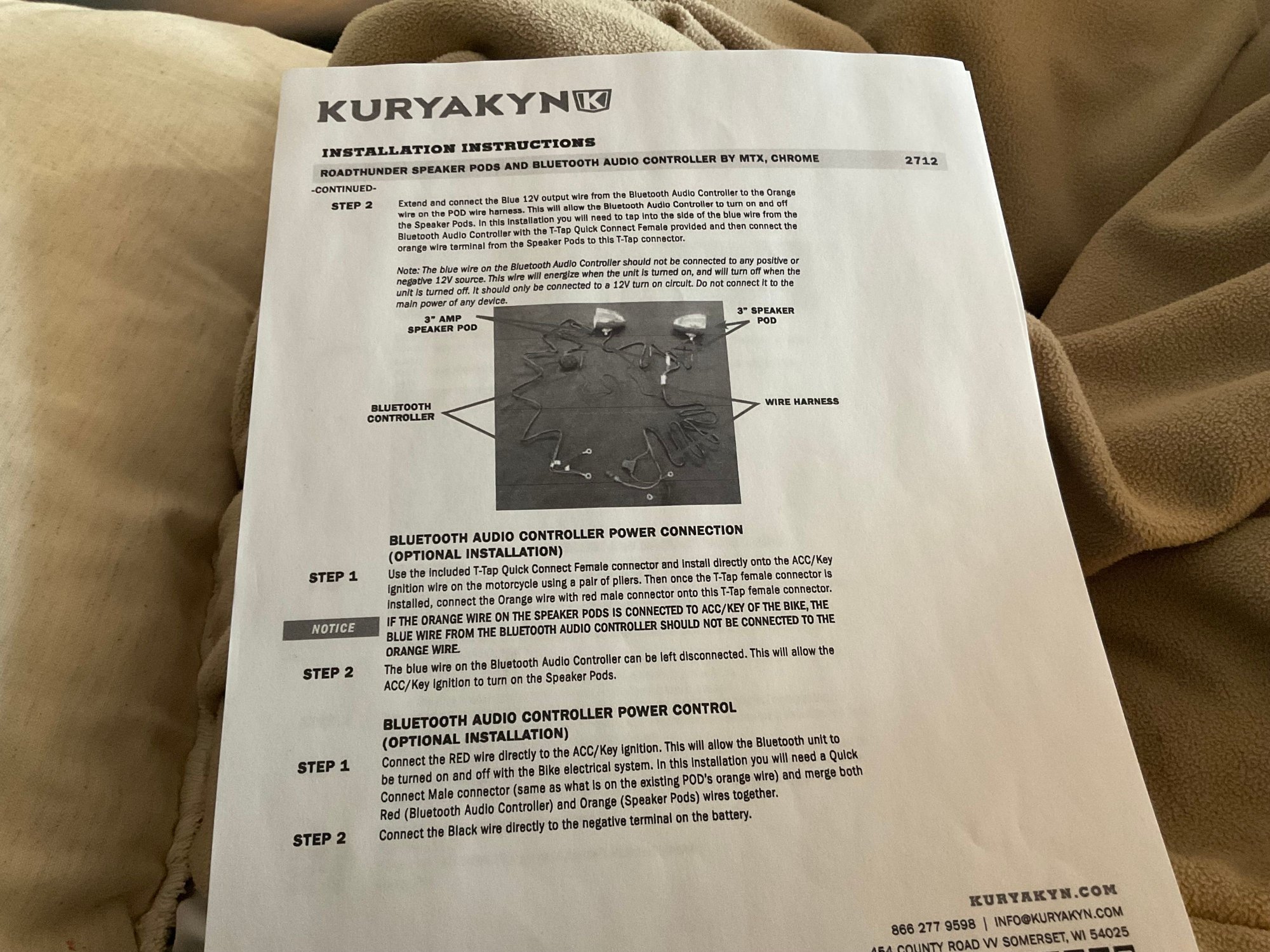 Also, the pods and Bluetooth controller each have wires that should be connected to the accessory wire on the bike. Question is if I even need to connect it if I can use the Nacelle switch to power up and down?