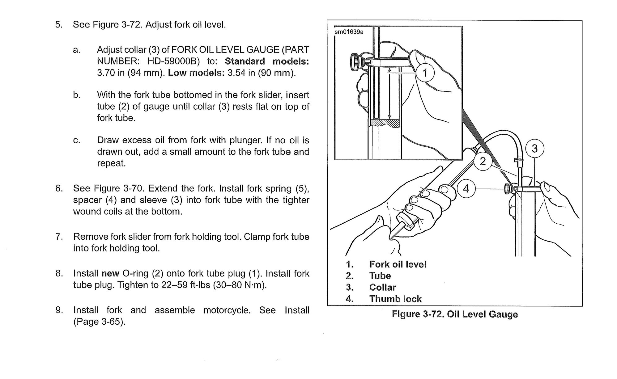 2. See Figure 3-70. Remove fork sleeve (3), spacer (4) and