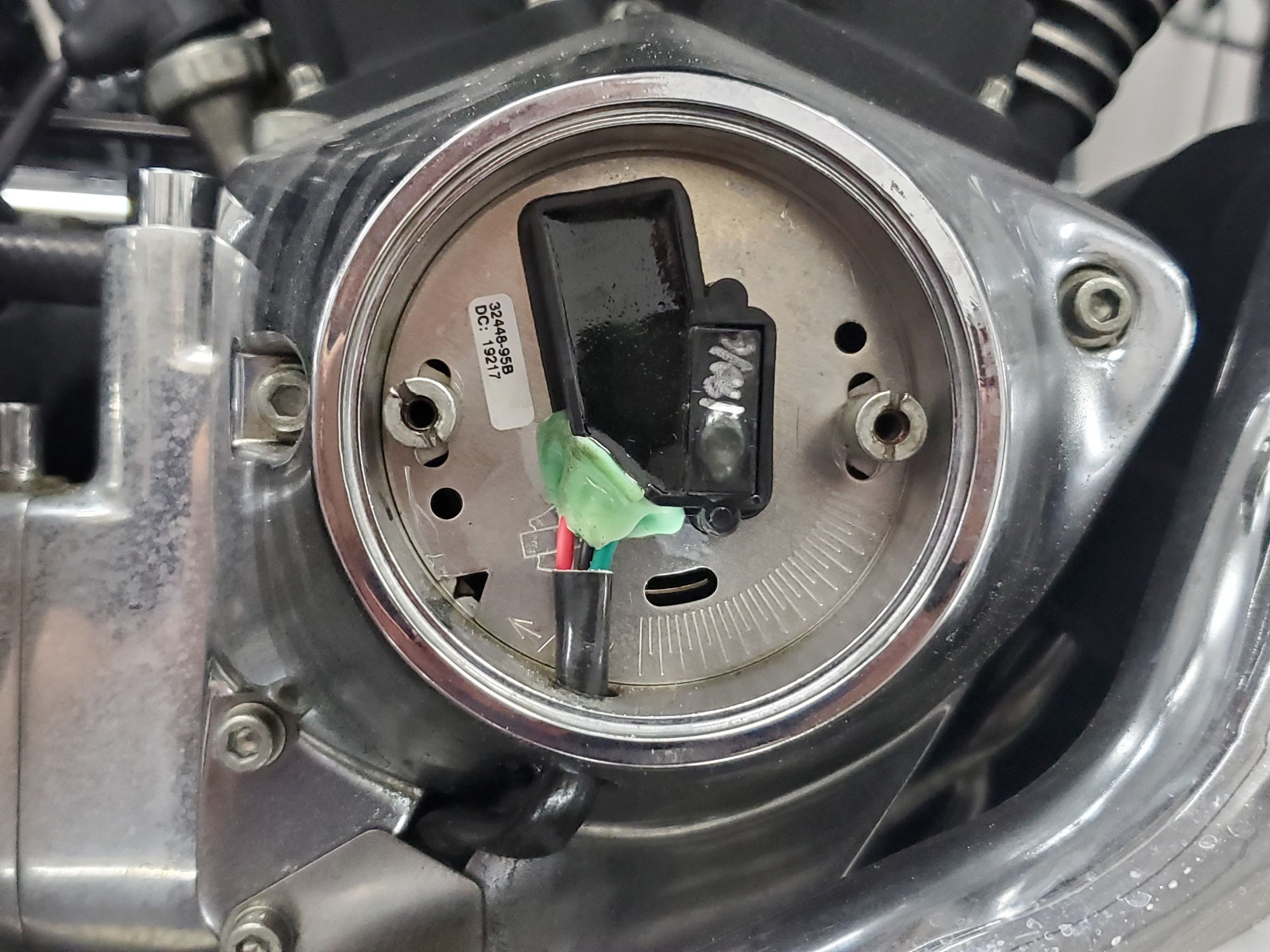 Take a good look at your cam position sensor in the cam nose cone.. Is it original and is it spitting brown goo..? If so like I said time for a Dynatek.. It is original but as you can see in the attached picture it is very clean..