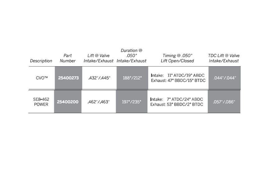 The 462 is more of a midrange cam that would be better for more aggressive touring with 3000 plus RPM's. Carry out a bit more. The cvo is low grunt and better suited if cruising 2800 and you don't like downshifting.