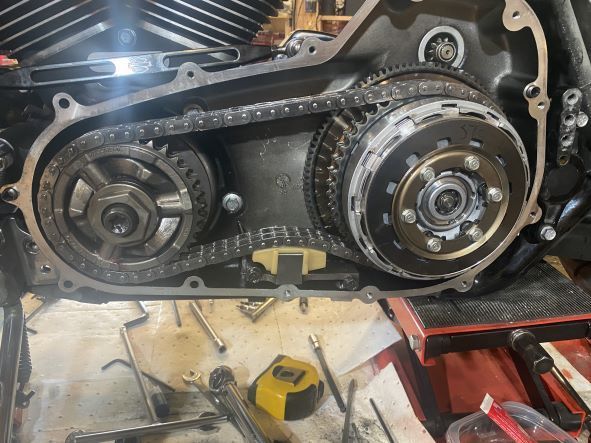 3. Notice how tight your primary chain is...Harley recommends 1/2" play....bet you don't have that.
