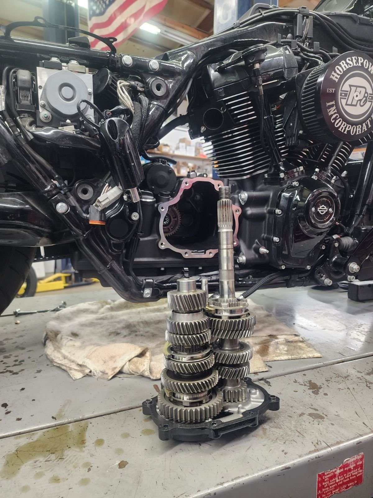crank was .0065 out so pulled it S&S going in. The longer stroke will make it a 133. I also had the transmission pulled it’s going to Andy Simonso he can do his magic new trap door and shift drum. I went with evolution clutch.