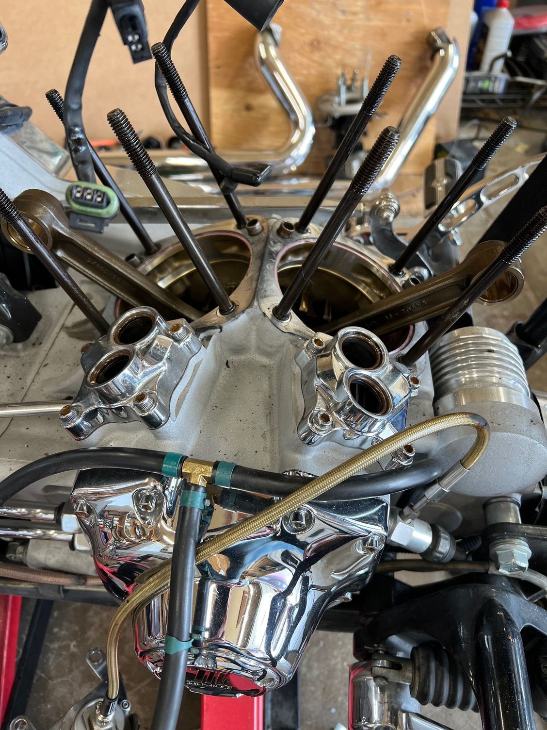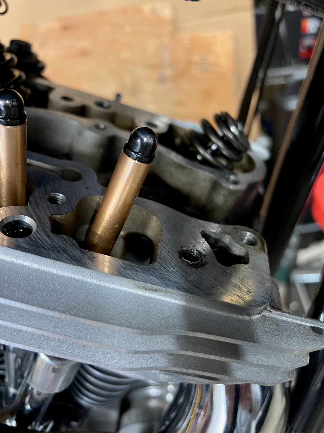 While reassembling the rocker box on the front head after gasket replacement, the threads for one of the rocker support plate bolts pulled out of the head. This happened just past contact. Didn't even come close to torque (18-20 ft/lbs). While I could fix this myself, the 98" kit from Hillside has 30,000 miles on it, so if I'm gonna go that deep, I may as well do a refresh and have the heads done as well.
