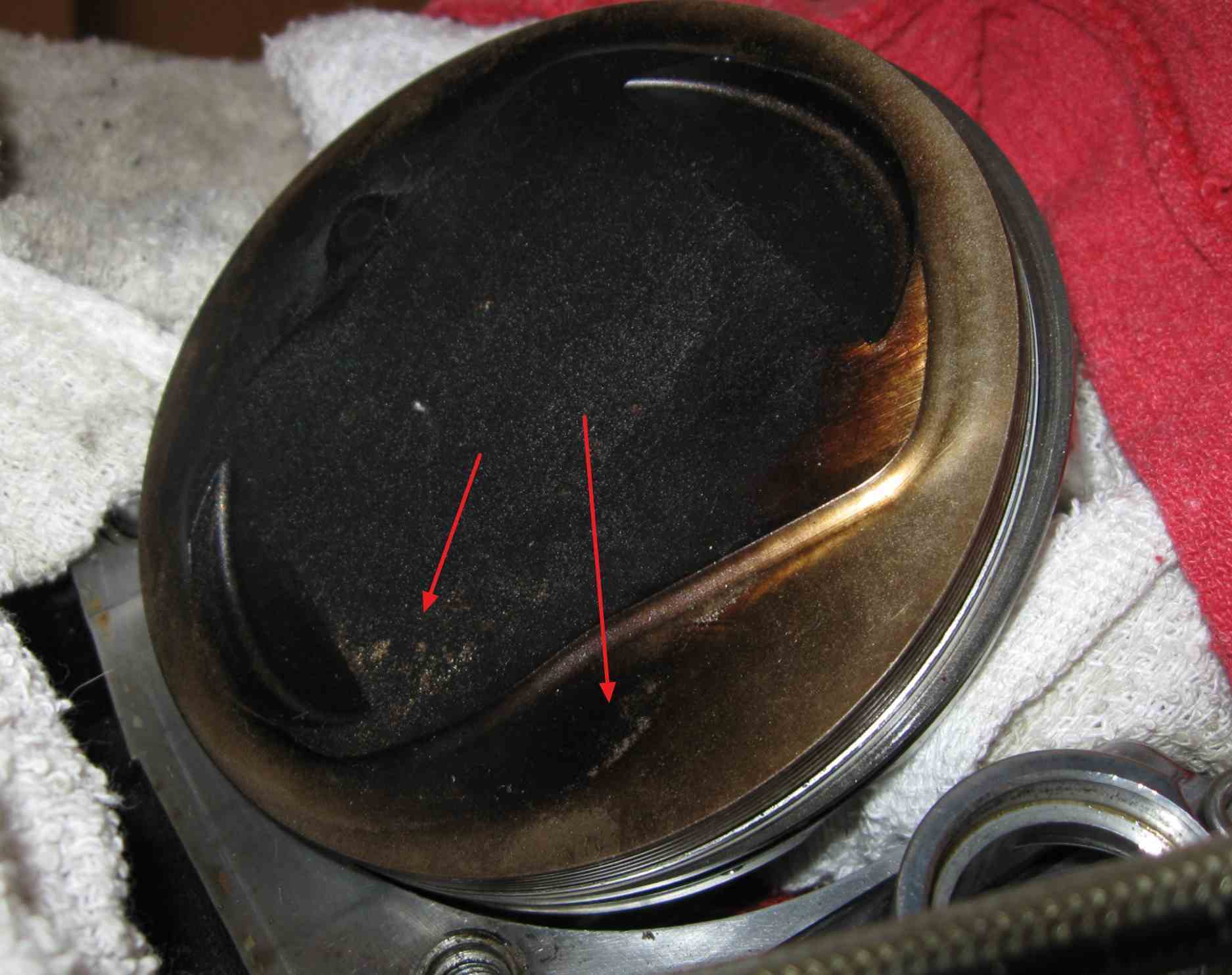 Looks like detonation on rear cylinder, thats why its cleaner. Not destroyed yet but could use a better tune.