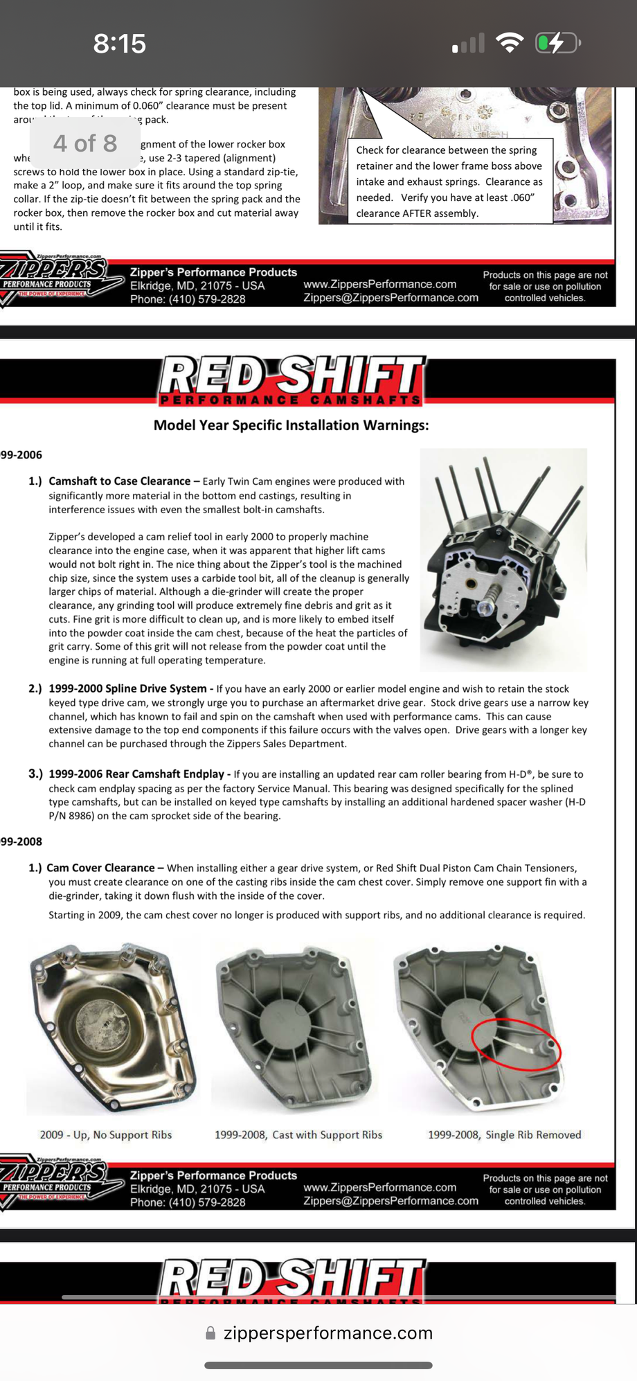 I also found a Zipper’s article stating the use of the second .055 thrust washer PN 8986 like I installed here when using a keyed shaft cam… I think I will give Zippers a call tomorrow to see if they can shed some light on my situation: