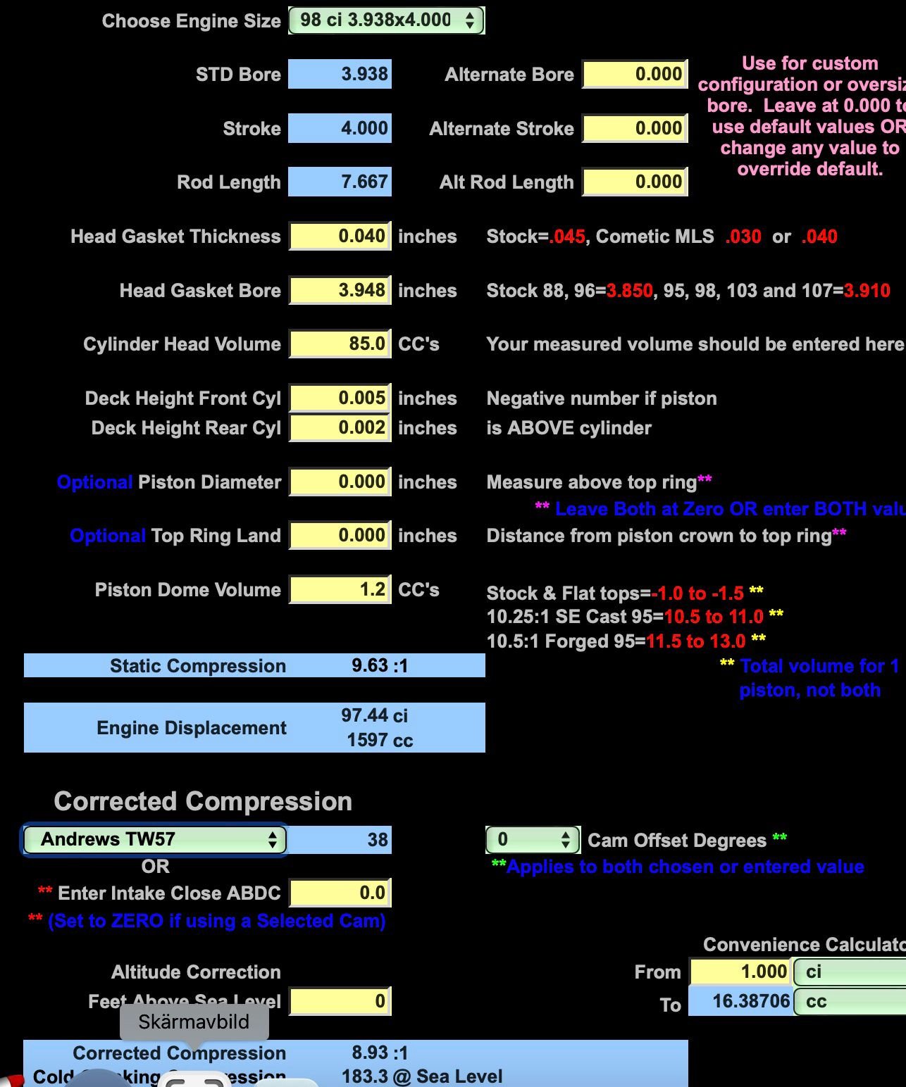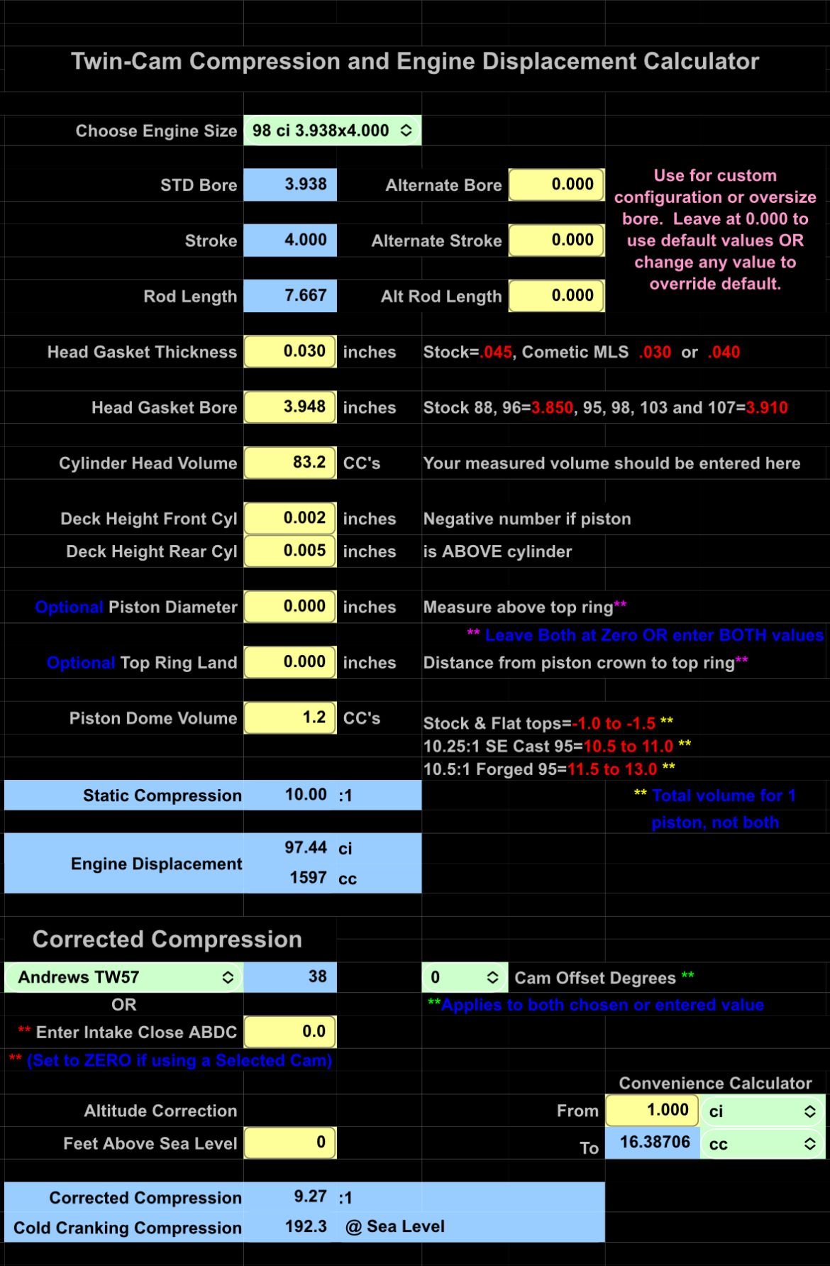 And when I put this in the Big Boyz it actually says 10.0:1 static, which will result in 192.3 psi with the 57 cam.
