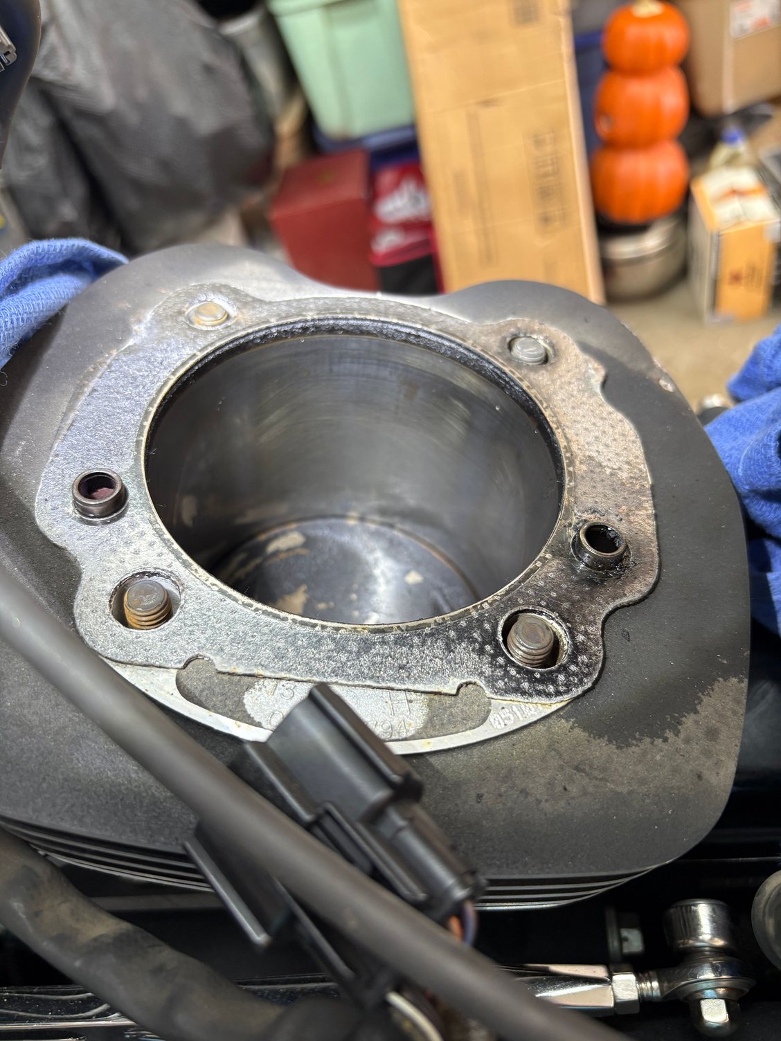 Yeah, that's normal looking. The four spots you are referring to line up with the cylinder stud holes in the cylinder and the expansion and contraction rate is slightly different in those areas. That's a large bore size for an air cooled engine and it's a modern marvel of engineering and manufacturing that the cylinder bore stays as stable as it does during heat cycles.