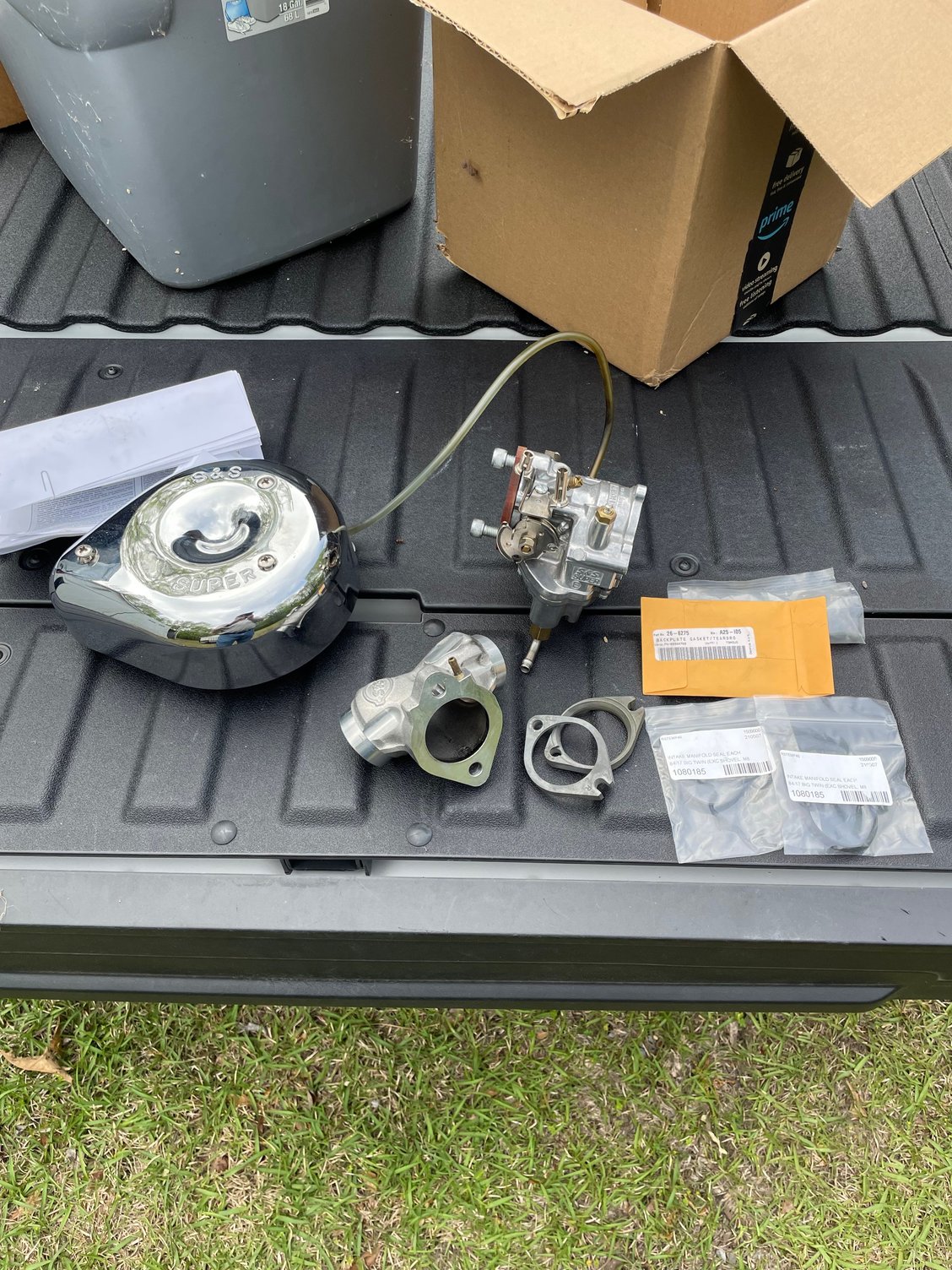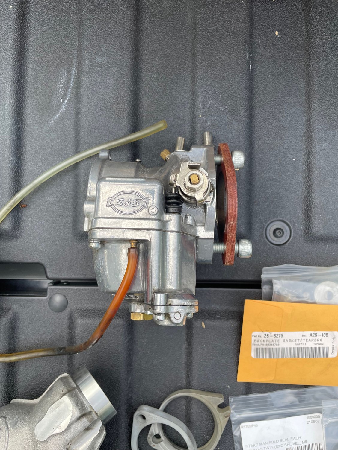 S&S Super E kit with Evo intake manifold and tear drop air cleaner. Have new intake gaskets, bowl gasket, and a few jets. Only used about 2k miles. $350.00 plus shipping.