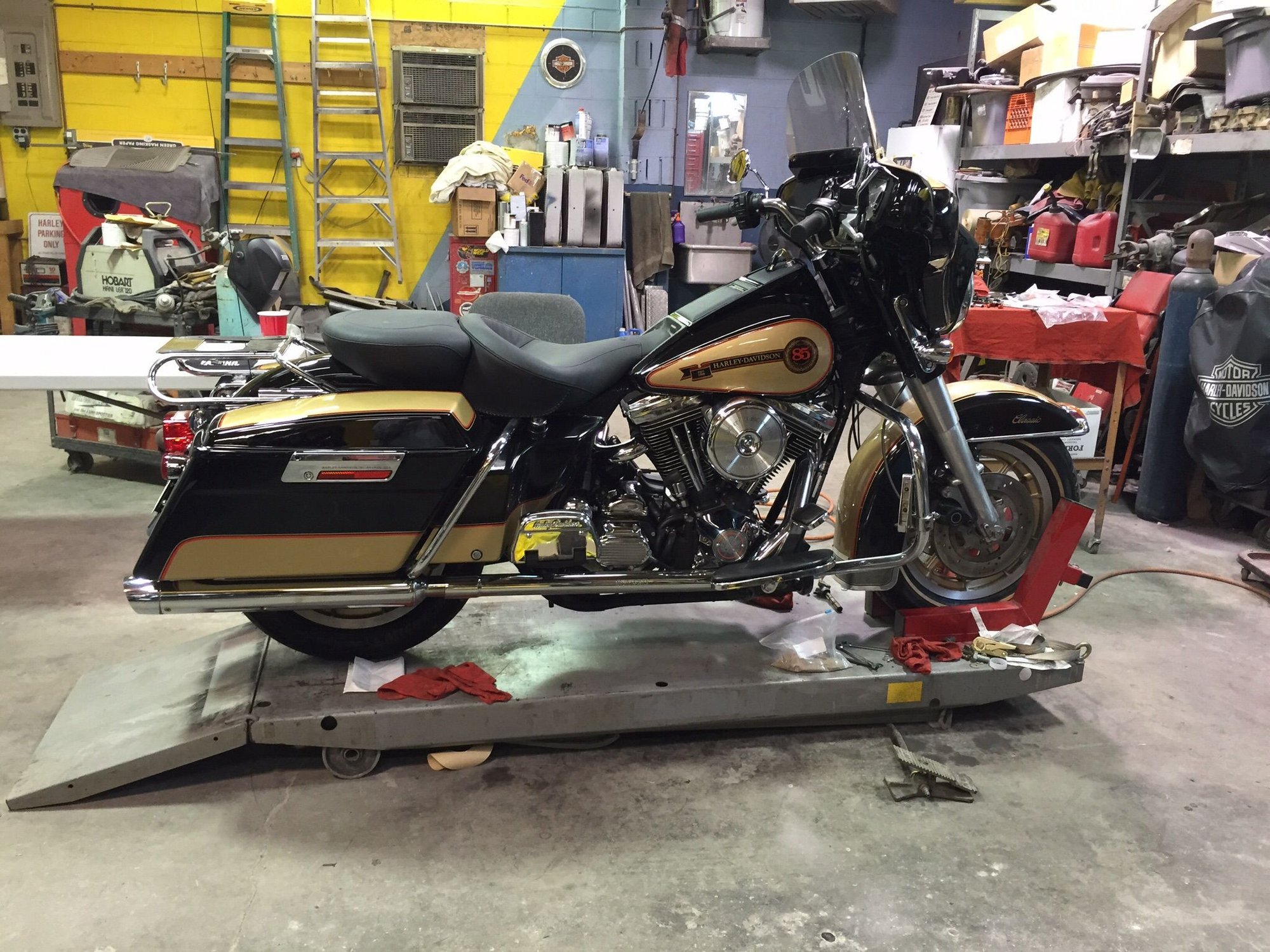 The pipes are Sampson true duels. Very good quality and fit perfect. The wheels are original paint just cleaned them up. It's #9 of 830. Keeping the original radio, it works and looks good. I do want to add a IPod hook up. I dont own any cassette tape. Any help out there with the IPod part would help. After that it's just ride and ride and ride some more!
