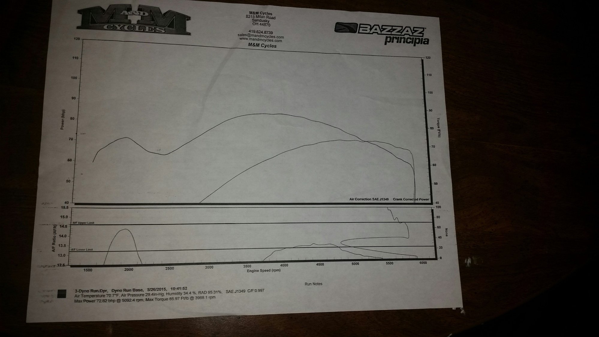 I did have a dyno done last spring, before i went with the mikuni carb. at that time i was at 73 hp and 86 tq