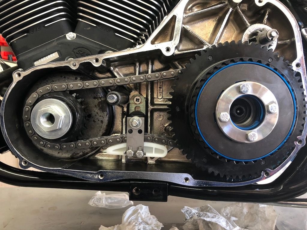 Anyway..got the primary together, added some oil..now this had been dry for quite some time so I was waiting for some issues..there's alway new issues..Looks like a plug in the S&S motor was missing and oil was oozing out..no biggie..shoved a plug in and away I went!