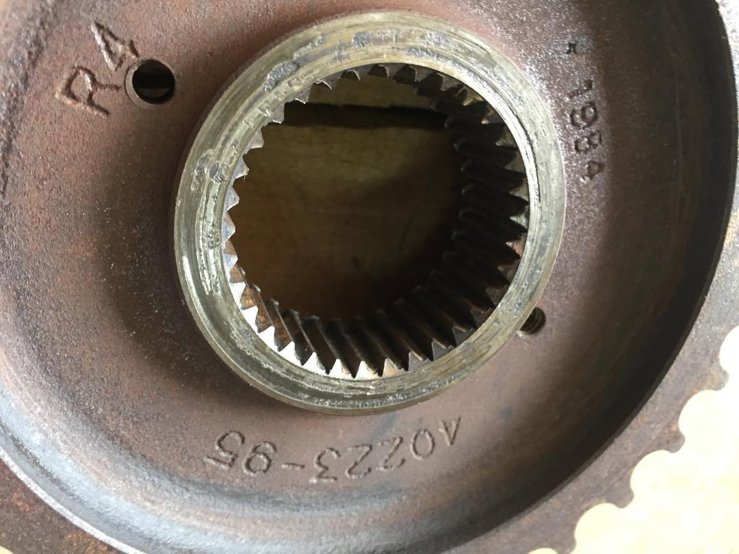 Above is a different pic (backside) of the pulley, notice the wear to the splines and then at the very back portion of the splines in the pic (which would be the front nut side of the pulley), there is unworn area of splines. Almost like the pulley was never seated completely on the shaft.