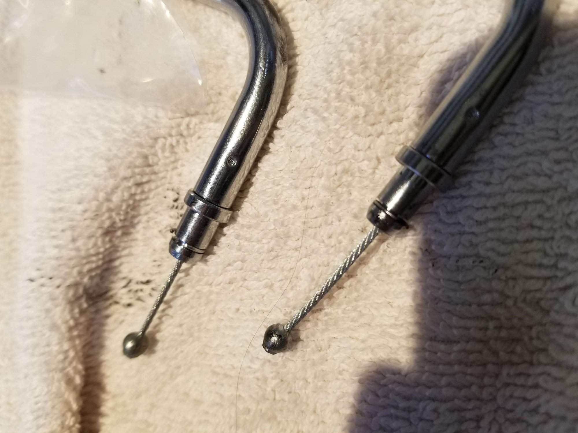 I have a 97 FLSTC and I am replacing the throttle and idle cables. The problem is I can't get the cable housing out of the twist grip housing at the handlebar. The manual (Haynes) shows the cables as having ends that thread into the twist grip housing, but mine has these tiny round spring clip thingies instead of threads. I can't compress the ring to allow it slip out. I tried to drag the ring out with a dental pick but I can't get a holt of it. I know someone out there knows the answer to this stupid question so thanks in advance.