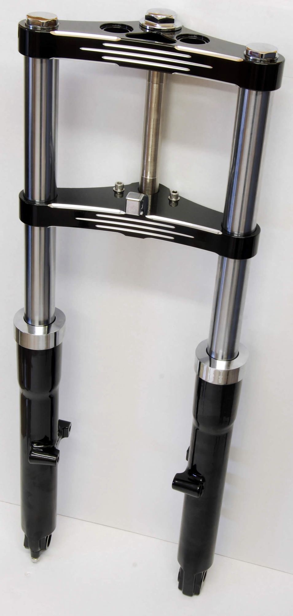 Softail trees are Nuetral but the offset is very low., So any lengthening of the tubes will create to much trail.. softails have a lot to begin with.