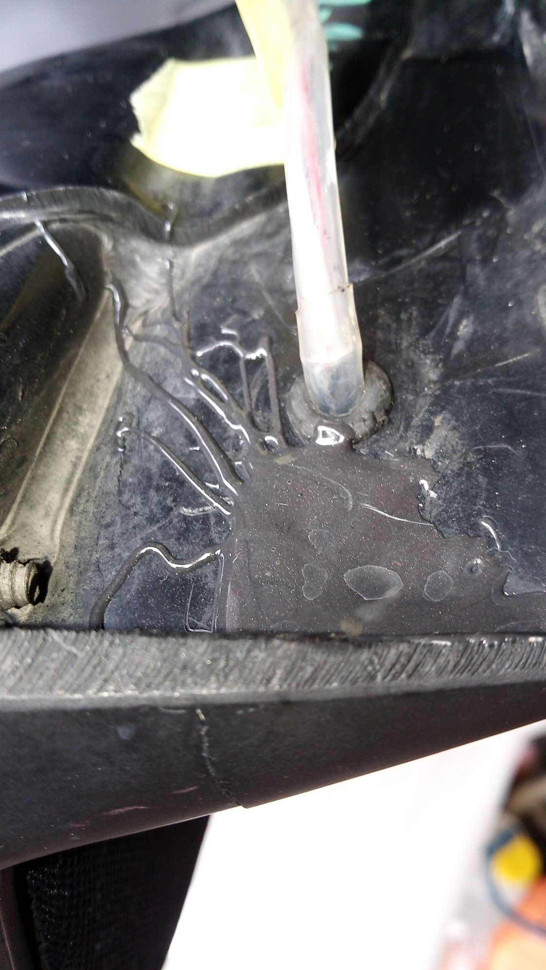 I saw a video of a process something like "plastic tig welding". It was seriously cool. They had a pinpoint torch (don't know if it was just super-hot air or an actual torch like oxy or something) and a plastic filler rod, and it went down just like tig welding. A little sanding. A little paint. And that baby would be good as new.