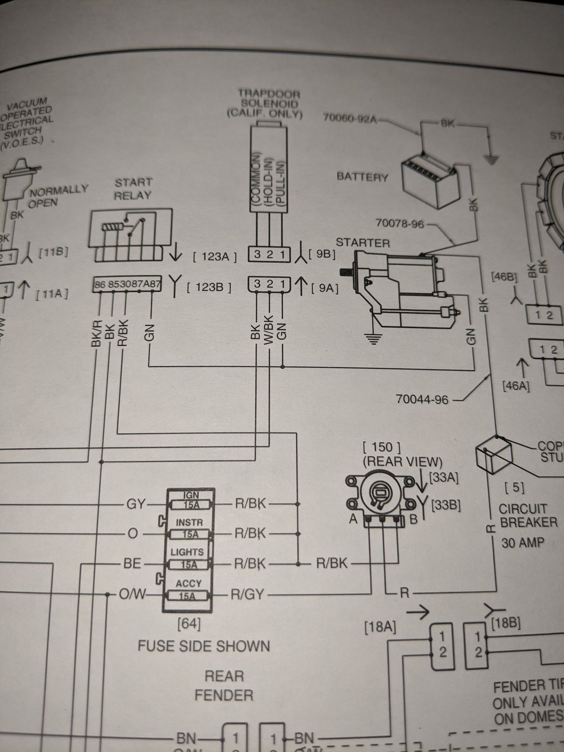 So then your main breaker is tripping out.. Without a doubt and if it's anything like my '98 the solenoid side of the starter relay is before the fuses and that appears to be the only thing that can take out the main breaker if you're losing power to everything Attached is a picture of a schematic of my fat boy.. I don't see why it would be much different. The only other thing that could be taking that out would be the voltage regulator That's the only other thing that comes off of the main circuit breaker..