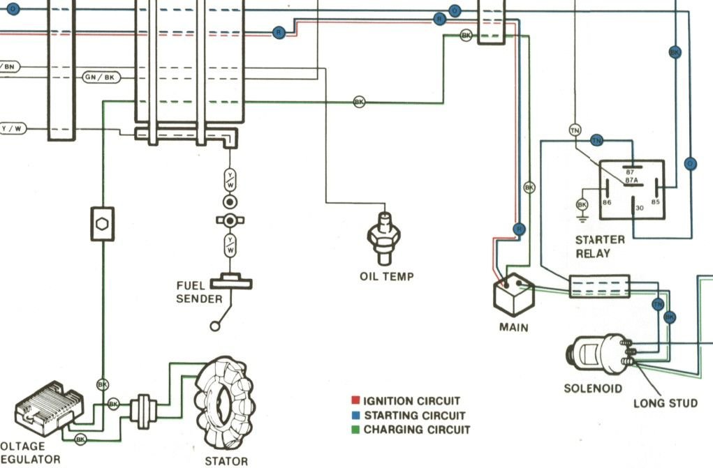 I recommend you verify the power from the starter (battery), voltage regulator on other (silver) breaker post, then on the silver post, connect only the wire required to power up the ignition/accessory. You'll know when the neutral, oil warnings come on and the starter button woks. Leave all other disconnected.