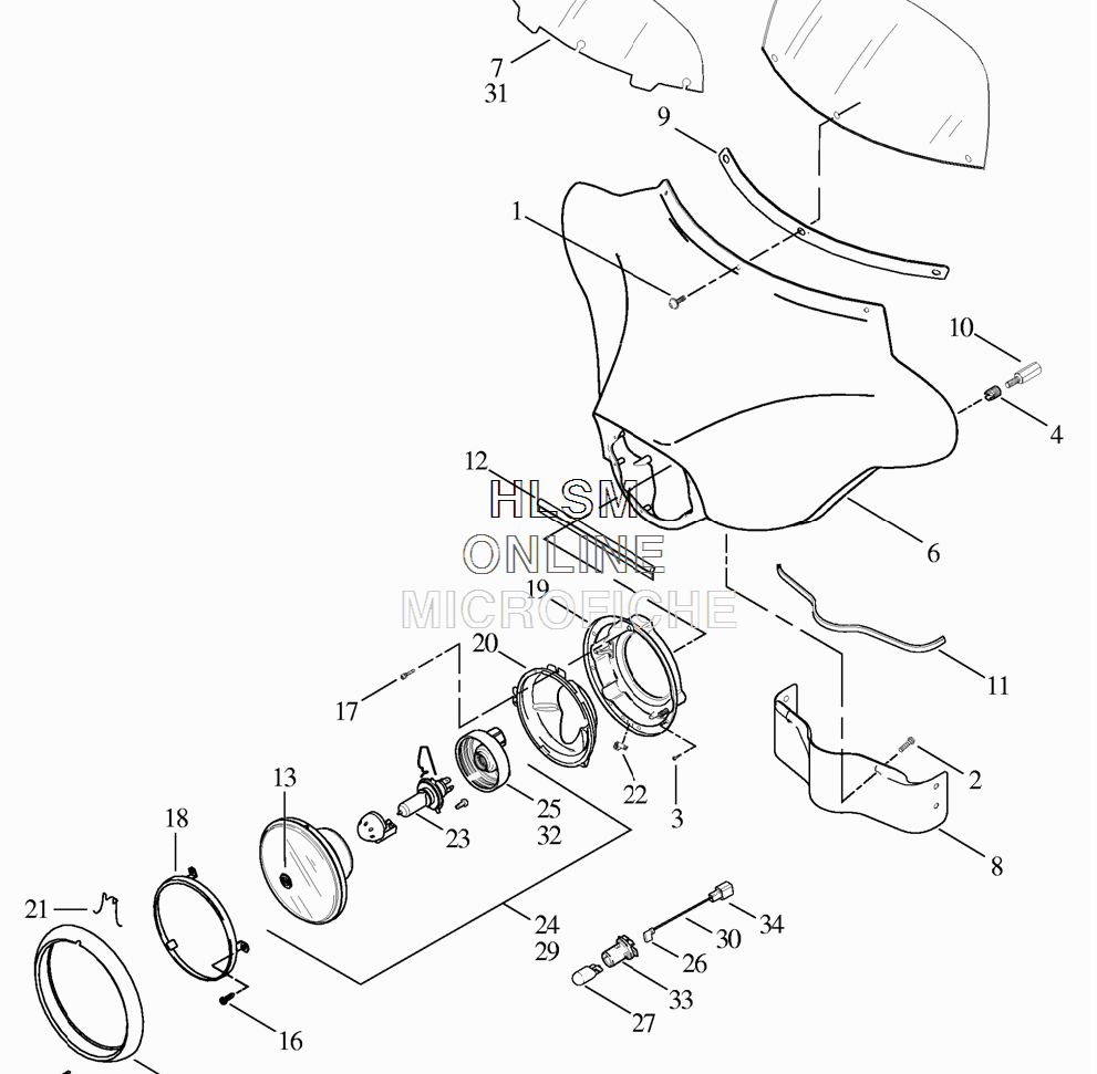 You'll need to find a front fairing from '98 - '13, your old one is not going to work, and also need the panel #8 that goes under the head light, there's plenty out there.