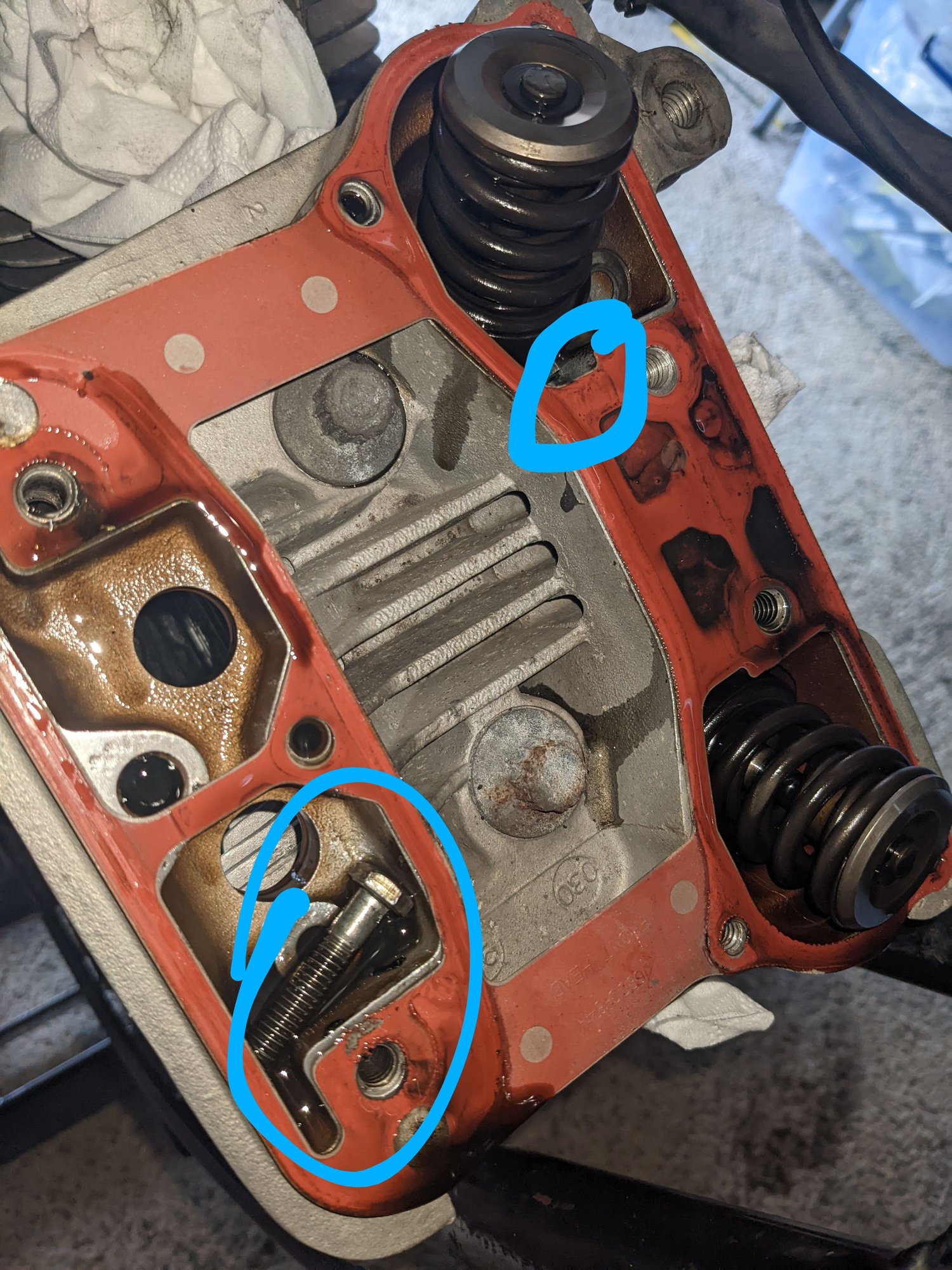 All going well on the tear down but some surprises along the way. Two of the rocker bolts were sat inside the cylinder head, one was resting against the outer valve spring